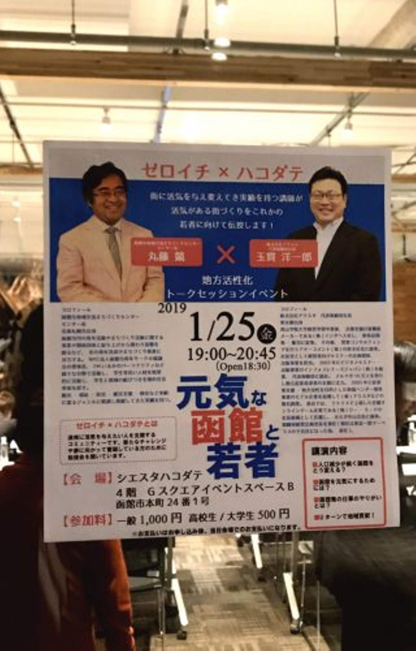 新年初の開催となる1/25(金)は、現地函館の地域活性化に尽力されている函館市地域交流まちづくりセンター センター長 丸藤競様と弊社代表玉貫のトークセッションで【元気な函館と若者】について学びました。