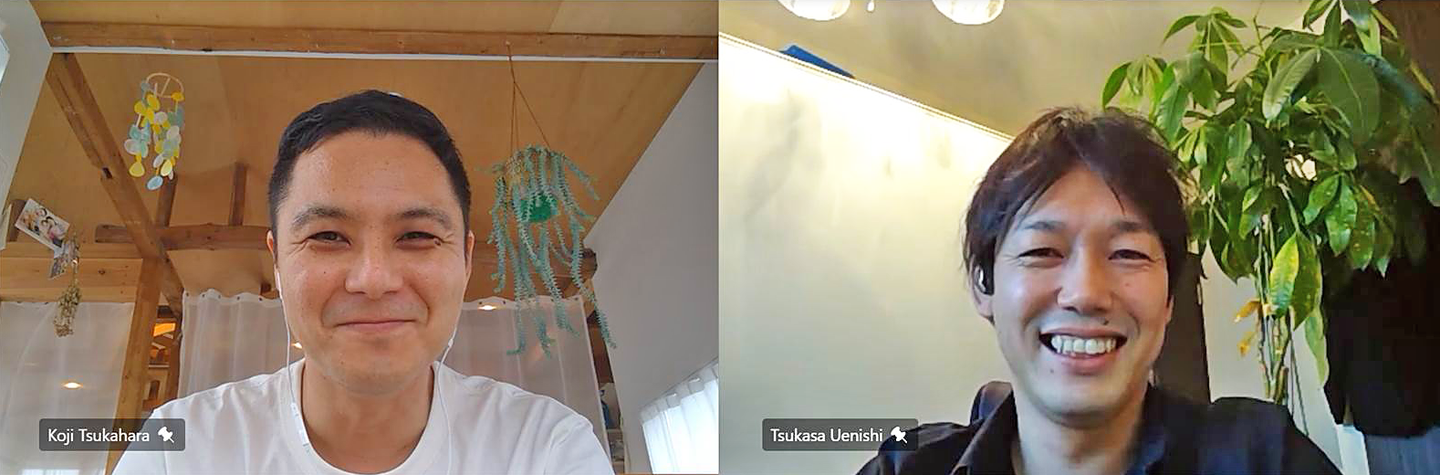 ▲オンラインインタビューの一コマ(写真左:塚原、右:上西)