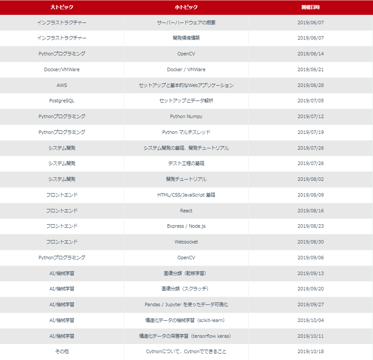 特にAvintonの強みであるAI/機械学習などビッグデータを使用したソリューション開発については、その分野に興味のあるメンバーが多いためPython/機械学習のコンテンツは多めになっています。