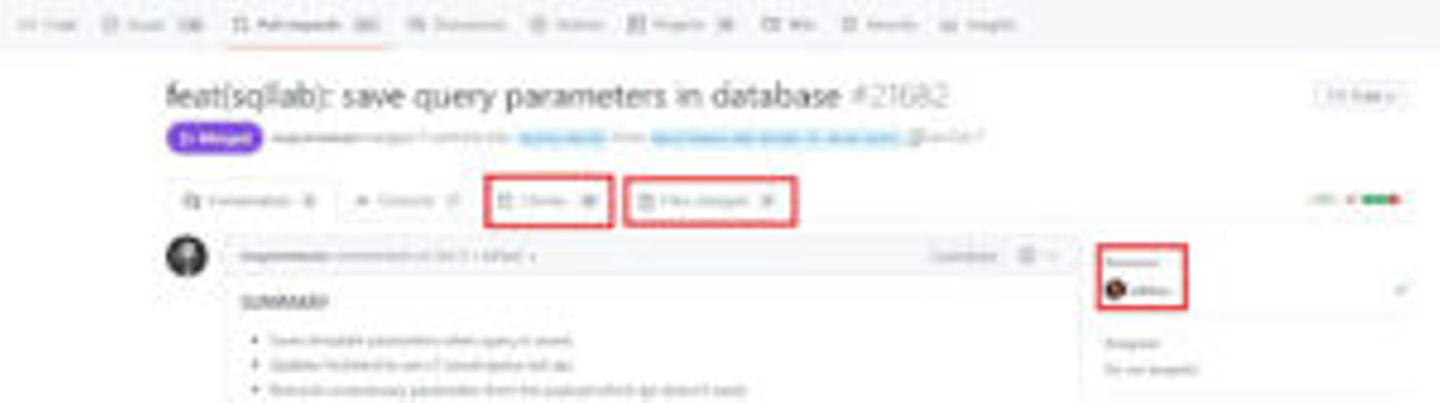 その後、報告されたバグに対する修正をコミットしたプルリクエスト “feat(sqllab): save query parameters in database“が作成されました。GitとGitLabでマージリクエストと言ったりプルリクエストといったり名前が変わるのですが、基本的には同じものだと思ってください。