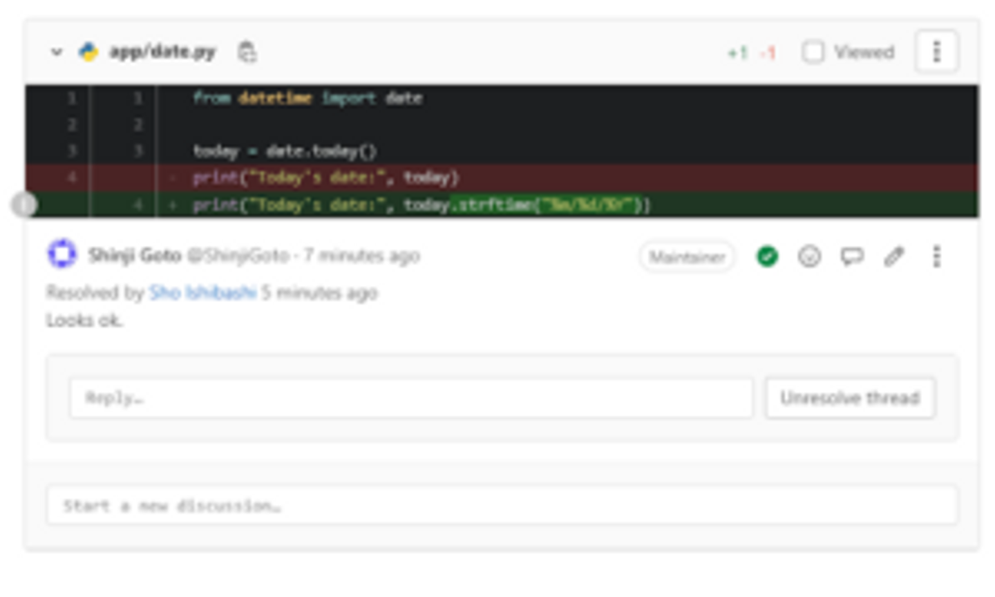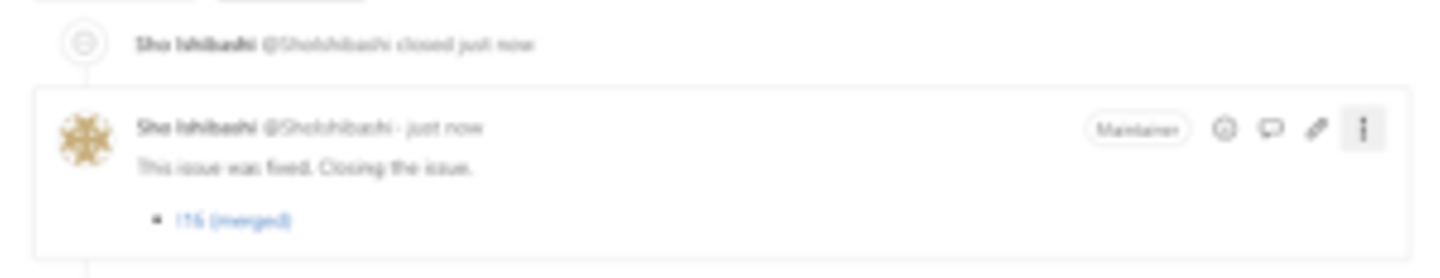 このリクエスト内でコードを書いた人とレビュアーを中心に議論を重ね、正しい変更だということを確認後、この変更点はマスターブランチにマージされ、機能の修正が完了しました。
