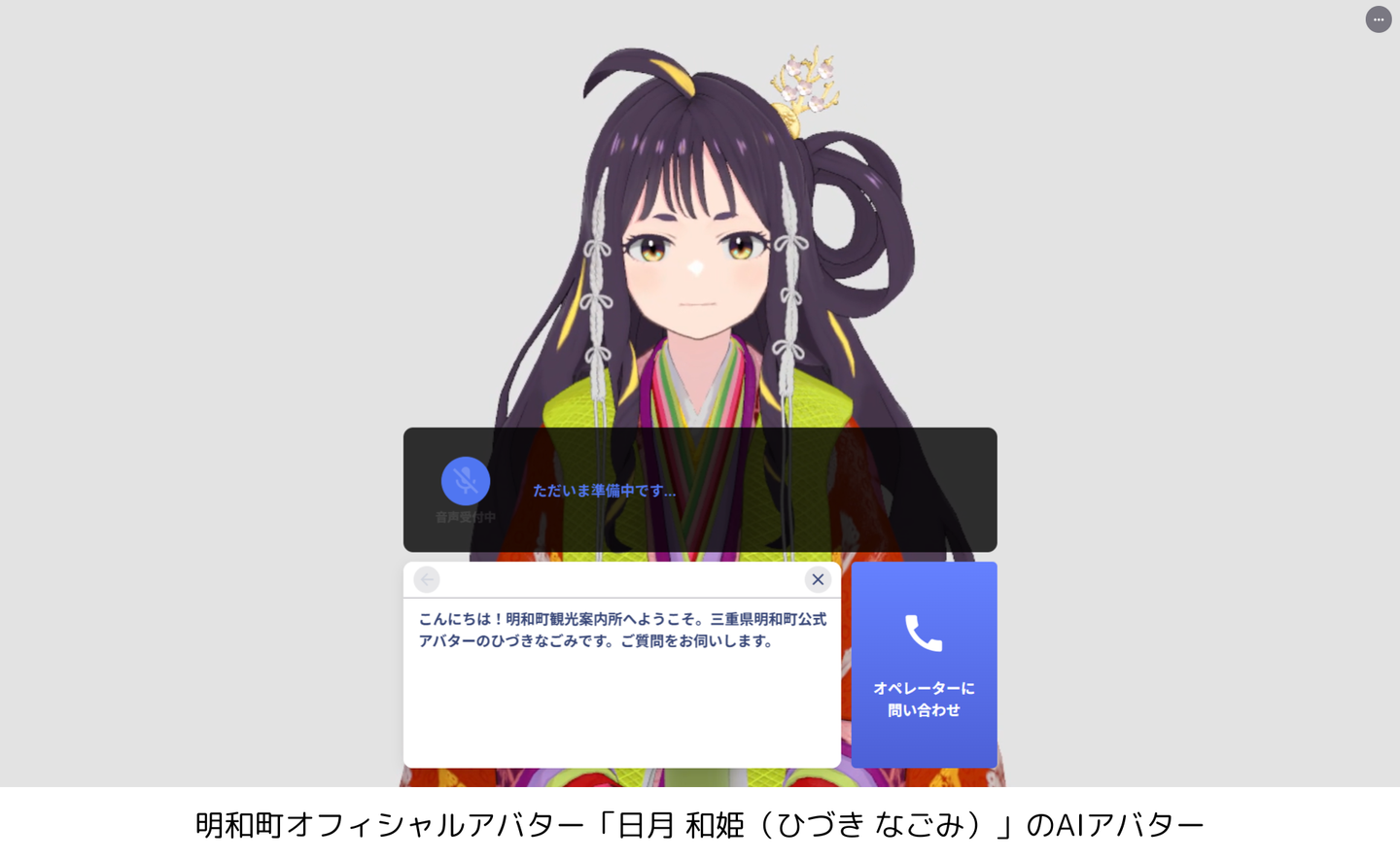 AVITAは、2023年2月より三重県明和町の「持続可能なまちづくり」を目指す地方創生プロジェクトを推進してきました。この度、明和町の観光案内所内に、2024年に制作した明和町オフィシャルアバター「日月 和姫(ひづき なごみ)」が案内人となったAIアバターが導入されます。