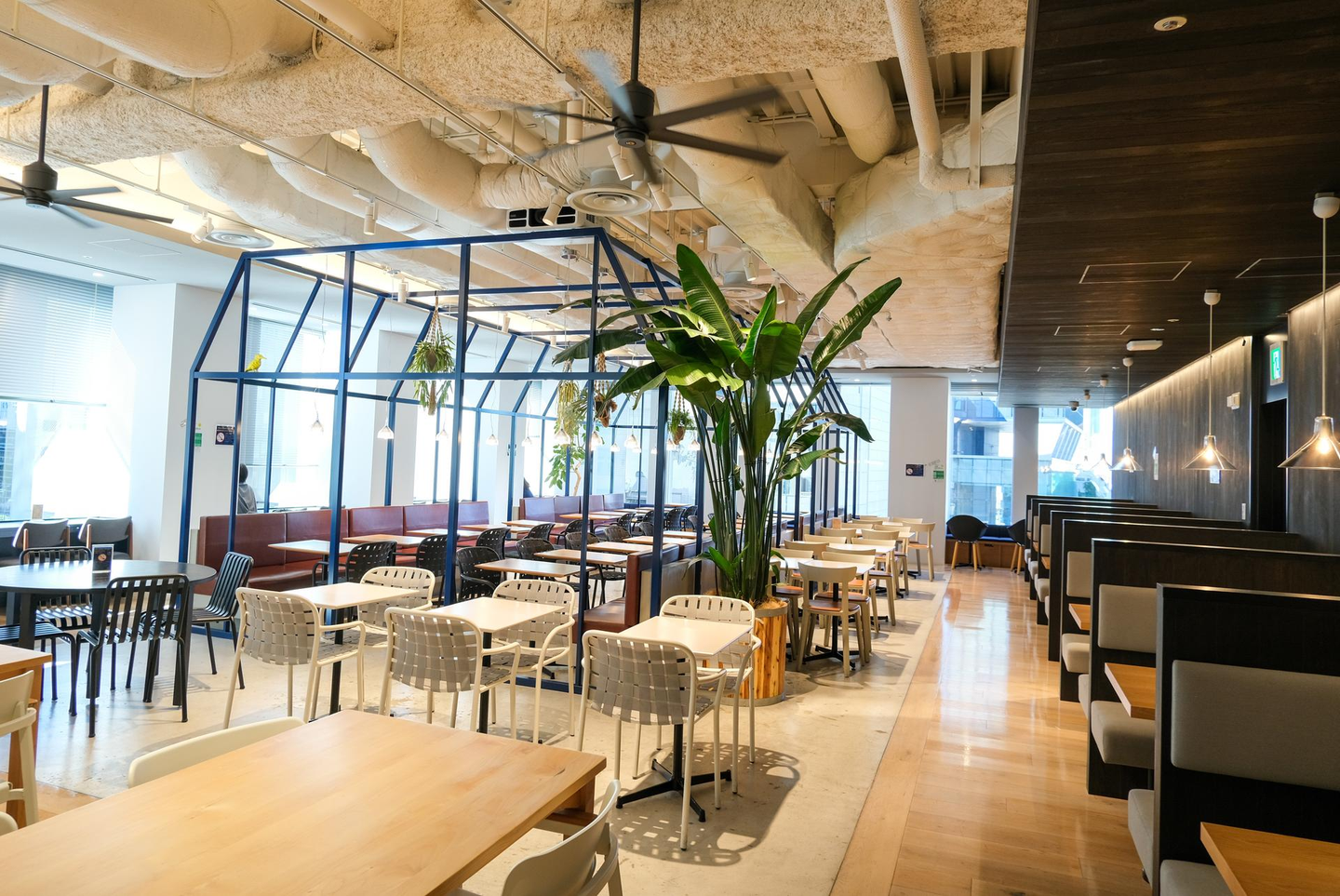 今回は、オフィスの様子やビルに併設された食堂兼ラウンジをご紹介します。