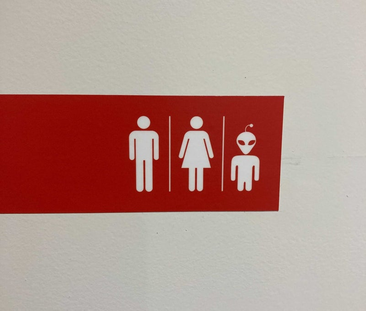 僕が勝手に撮ったオフィスやメンバーに関する写真なんかを載せたいと思います。今回はこちら。当社の化粧室の案内になります。当社は国籍やジェンダー的な概念も飛び越えて星が違う人(?)もウェルカムです。