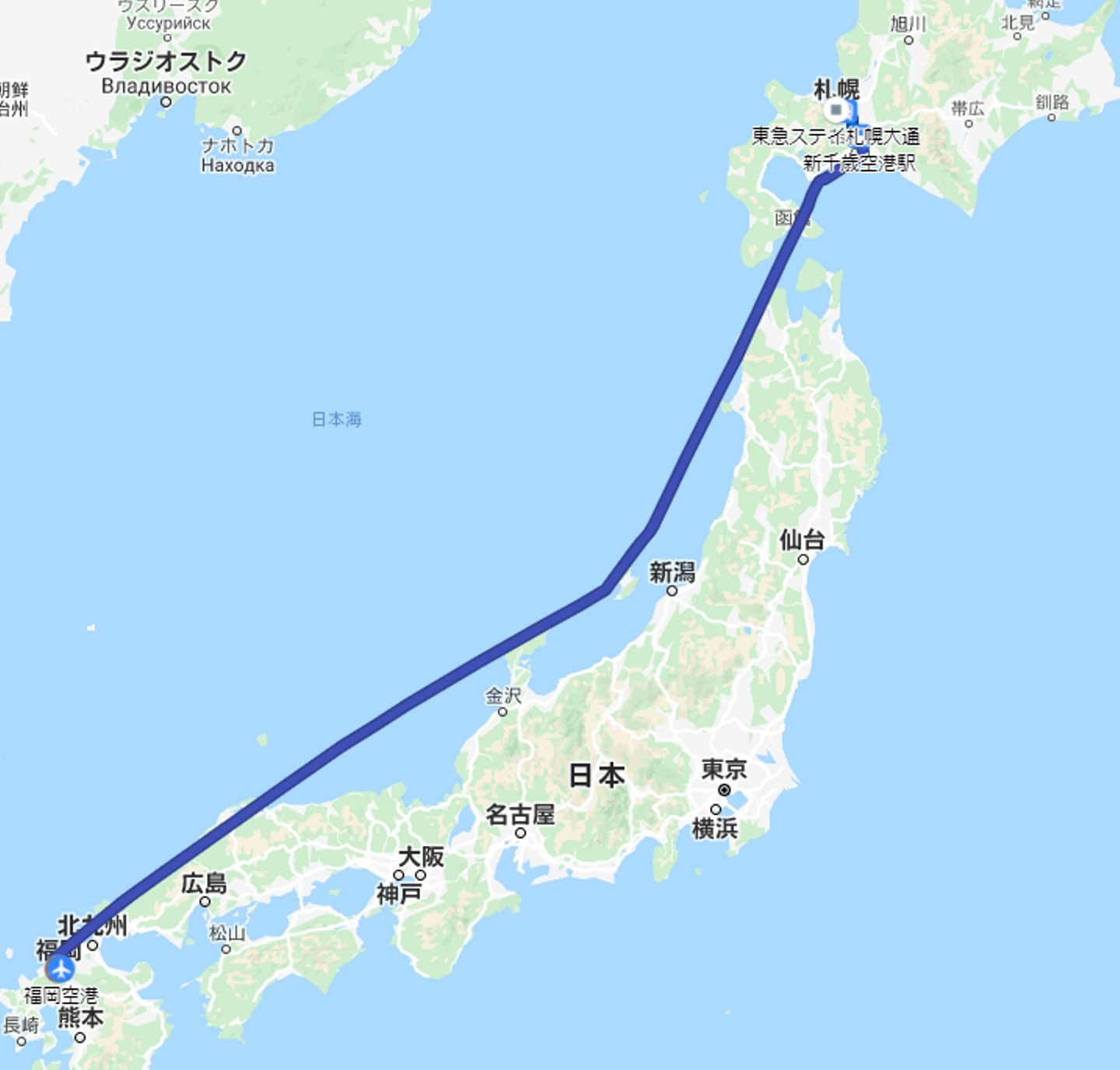 初日は業務が終わりかける18:00前後のフライトでした。えっ?「業務終わってからすぐとか無理でしょ」「連絡来たらどうするの」という心配はありますが、JALやANAを利用していれば空の上でもインターネットは繋がりメールの返信も可能ですので、然程心配をせず搭乗すること可能でした。「じゃ、新千歳→ 福岡はどうしたんだよ」となりますが、これもフライトを昼間にしただけです。もし切迫した状況であればTeams のチャットなどで連絡が来て仲間に助けてもらうという形で対応できたでしょうし、これは休暇と同じ様な対応だったでしょう(ちなみに足りない労働時間は終業時間を延長して対応しました)。