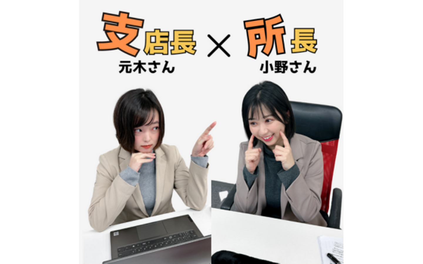 元木さん / 支店運営全般を行う。趣味は麻雀。 × 小野さん / 営業所運営、営業を行う。趣味は飲酒。