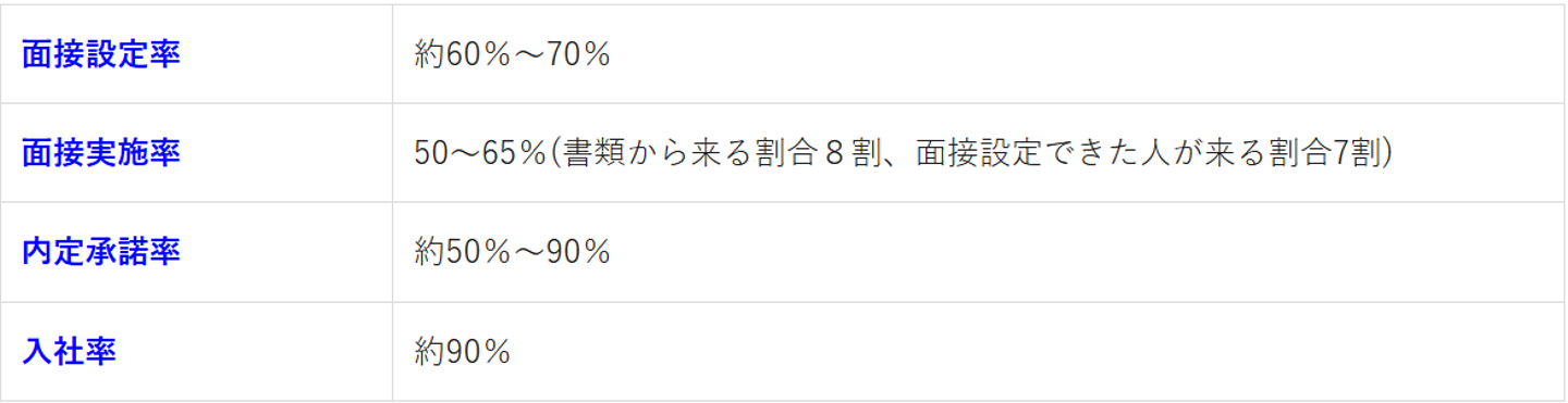 フローの中で青字になっている「面接設定率」「面接実施率」「内定承諾率」「入社率」は社内で改善することができる項目です。