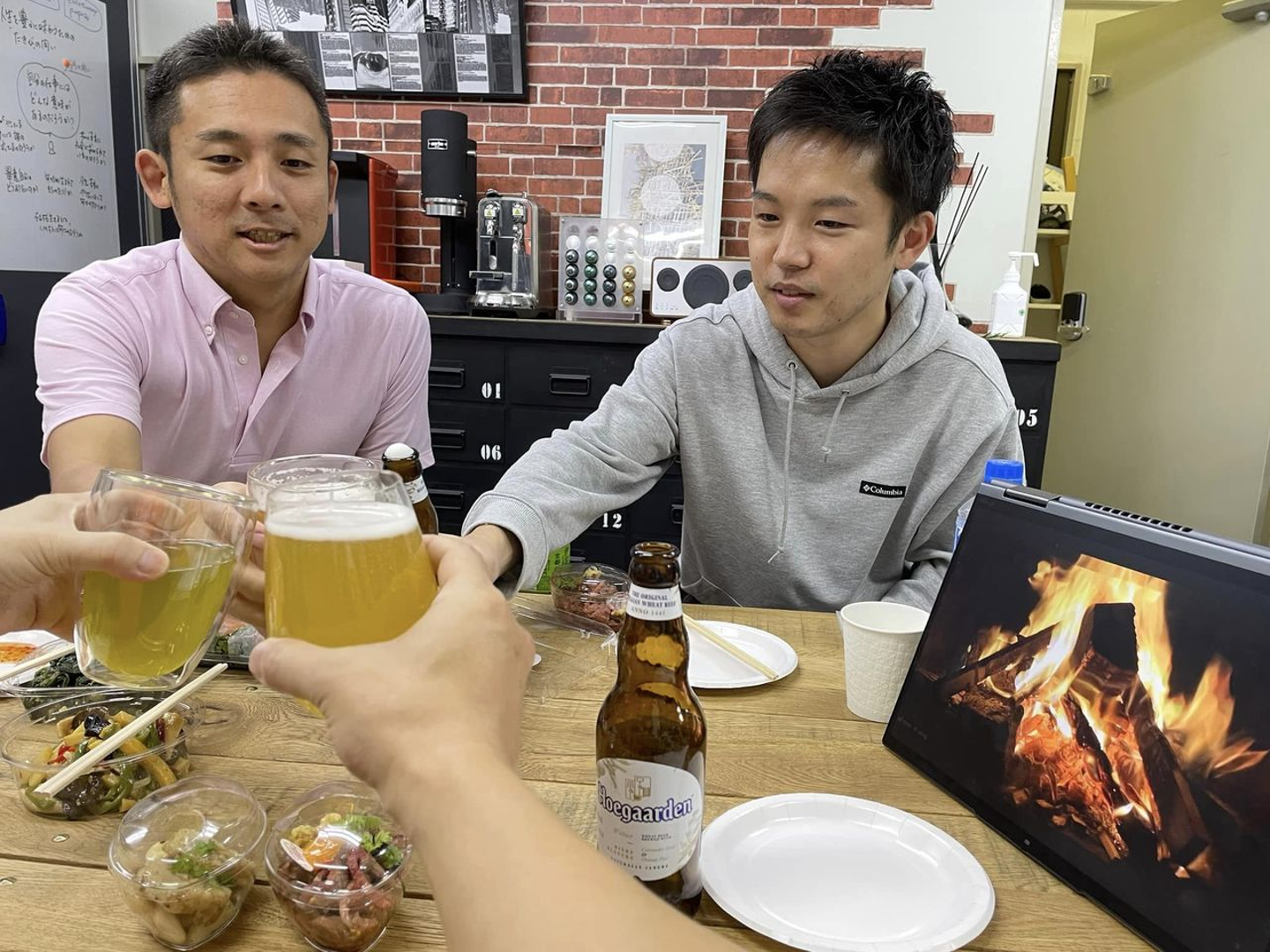 流しているたきびの映像と音の影響もあり、なぜかオフィス空間にいるのに、実際にたきびを囲みゆっくりとお酒を飲んでいるような気分になってきます。