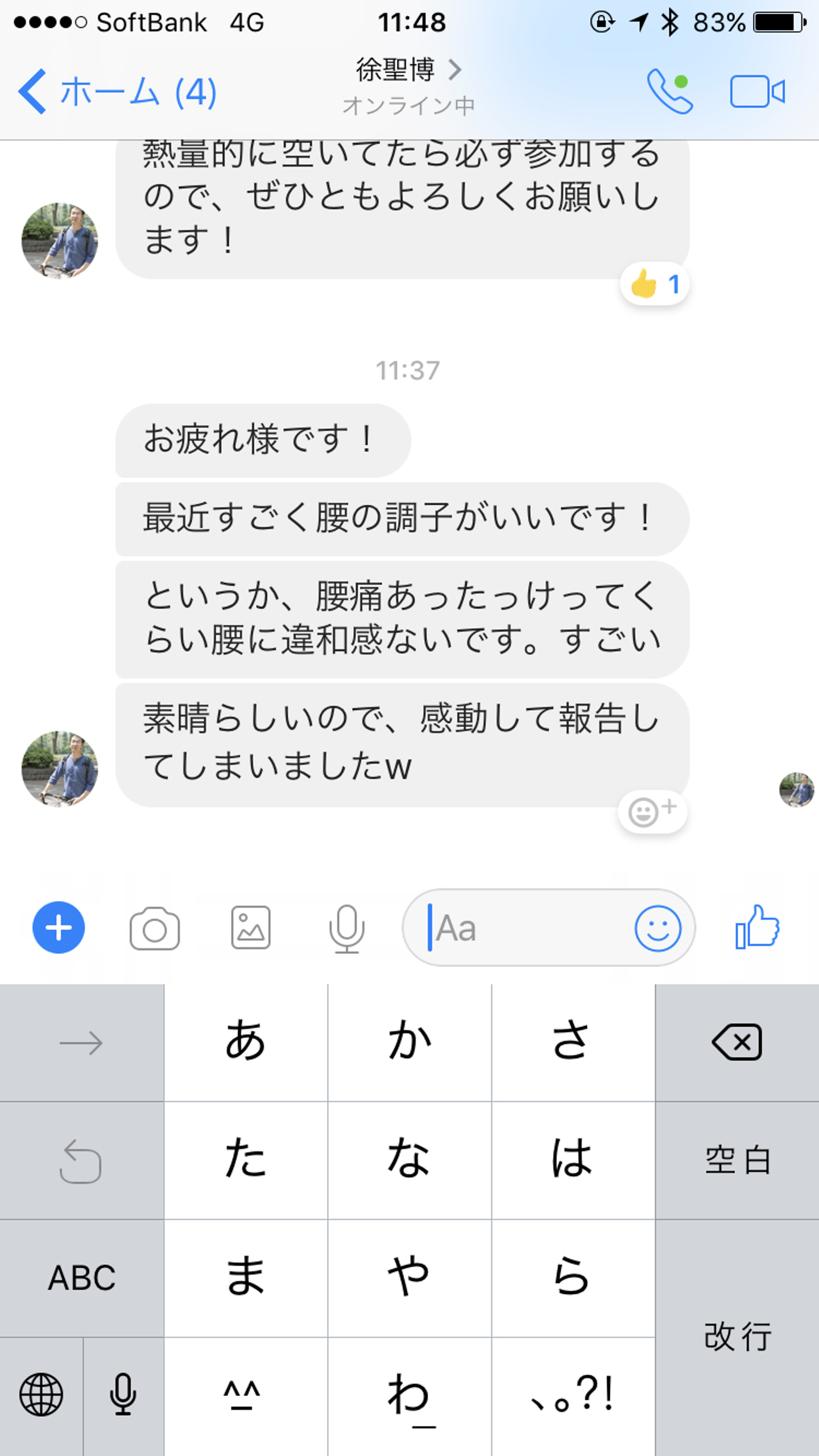 今日も10年間慢性的な腰痛で悩んでいたユーザーの方から、こんなメッセージを頂きました。