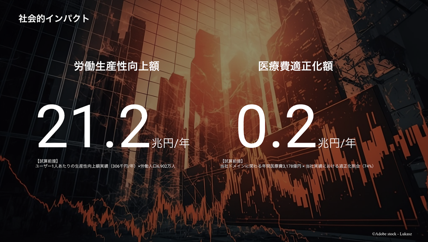医学的根拠に基づいたプロダクトであり、従業員一人一人の心身の不調に寄り添うことで、企業全体の健康に関するリスクを削減し、企業全体の労働生産性向上を支援しています。企業として介入しづらいメンタルヘルスの不調に対して、カラダの痛みや悩みからアプローチする独自性の高いサービスです。