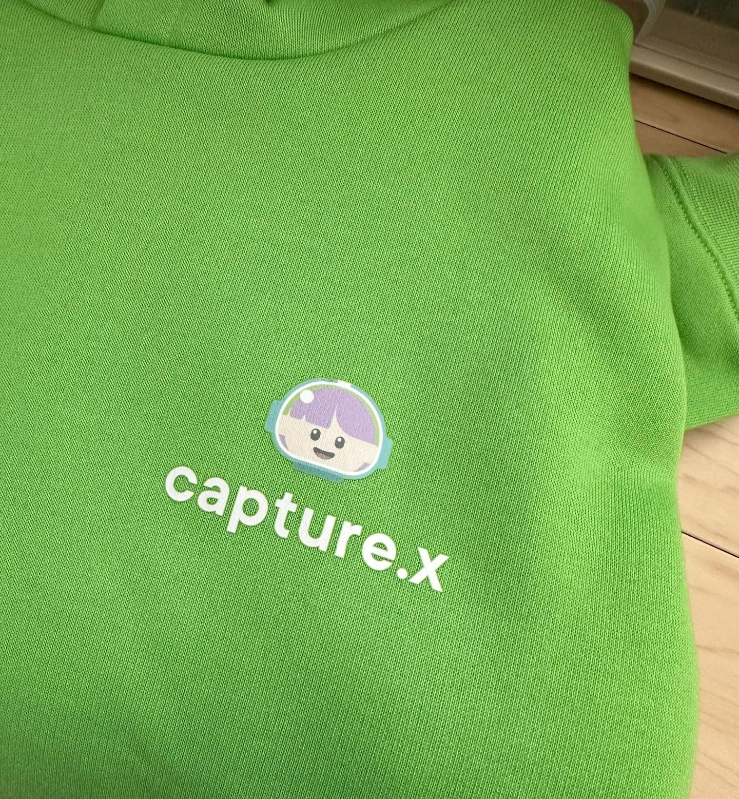 我々capture.xチームは、環境系プロダクトらしく蛍光グリーン色のパーカーを着ている集団です。