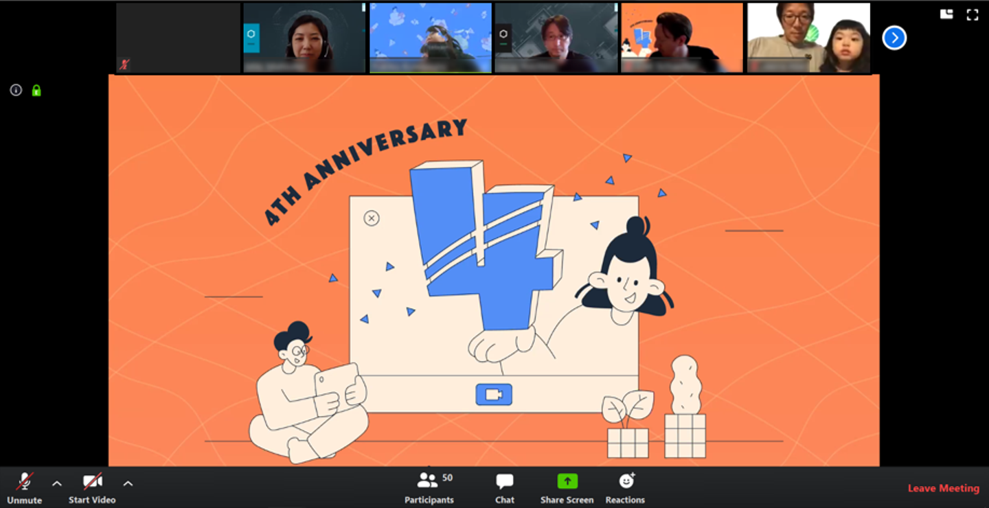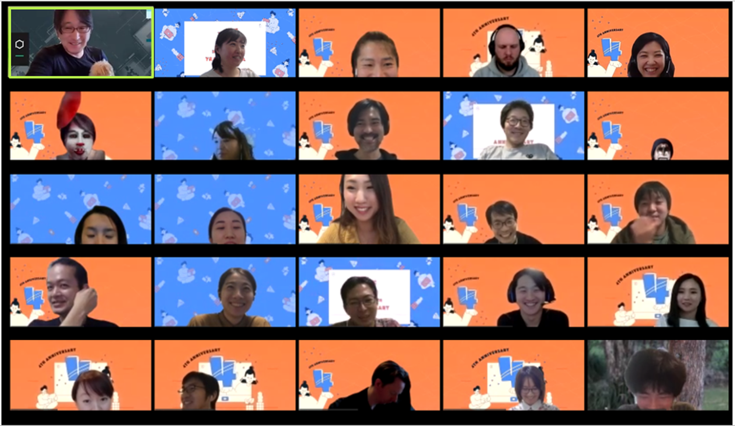 現在は新型コロナウイルス感染拡大防止のため、完全フルリモート勤務を行っています*。そんな中でも、4周年記念を皆でお祝いすべく、Zoomを利用したオンラインパーティを開催しました。(*5月19日現在)