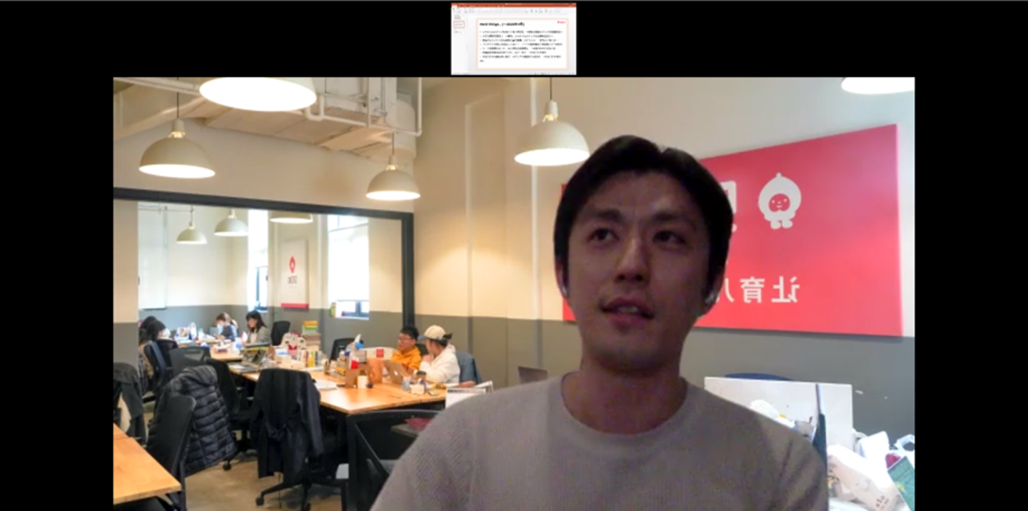 Onedot株式会社は2016年12月、「世界中の子どもと家族を笑顔に」をミッションに設立された、中国最大手の育児メディア「Babily」の運営会社です。CEOの鳥巣さんは、通常、上海をベースにお仕事されていますが、今回は東京から、上海のオフィス画像を背景にご参加。