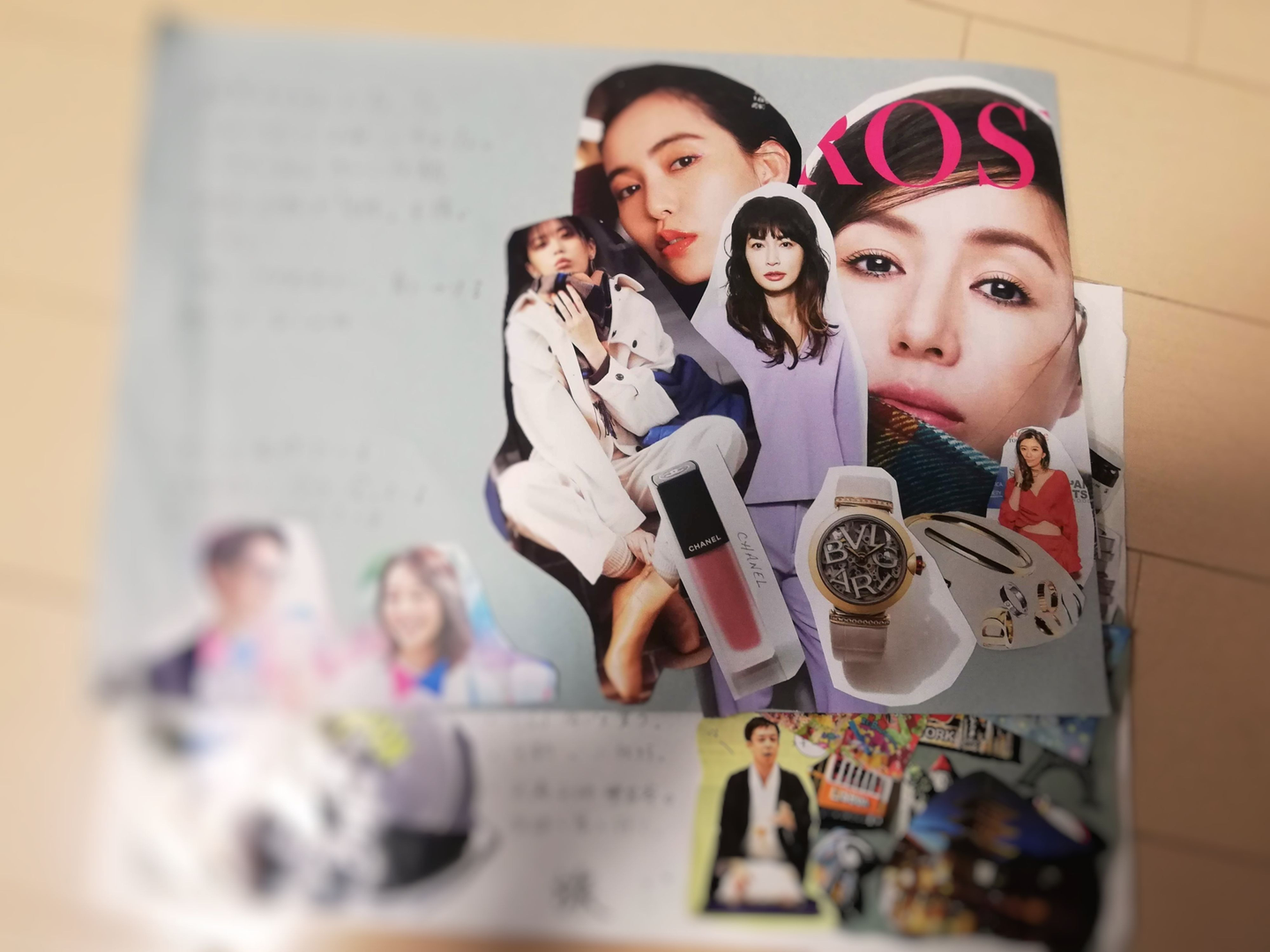 そのイメージに合う写真を雑誌や本から切り取って貼ります。