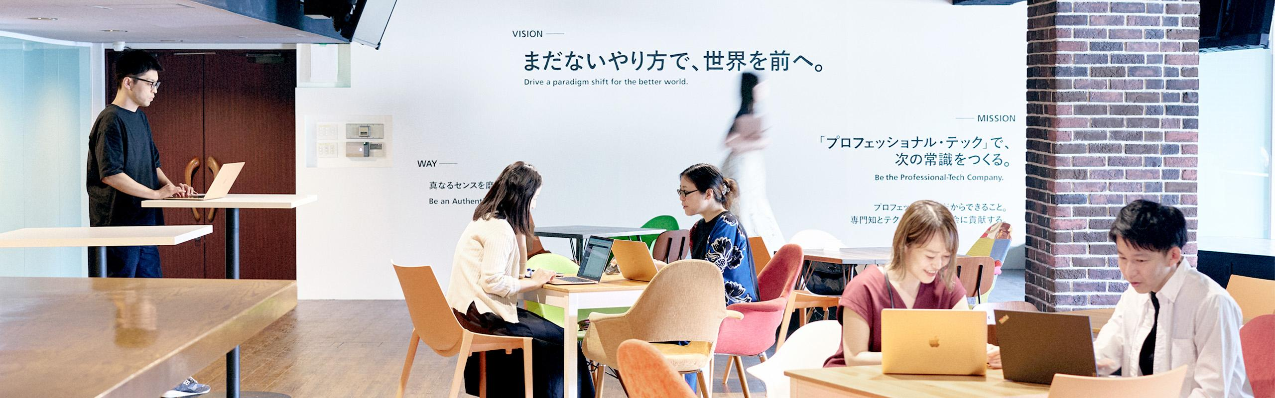 私たちの原動力は、「まだないやり方で世界を前へ。」というビジョン。新サービスの創造はもちろん、既存サービスの見直し、社内体制の変革まで、会社をより良くするための変革を恐れません。常に新しい視点を取り入れ、既成概念にとらわれない発想で、まだ見ぬ未来を切り拓いていきます。