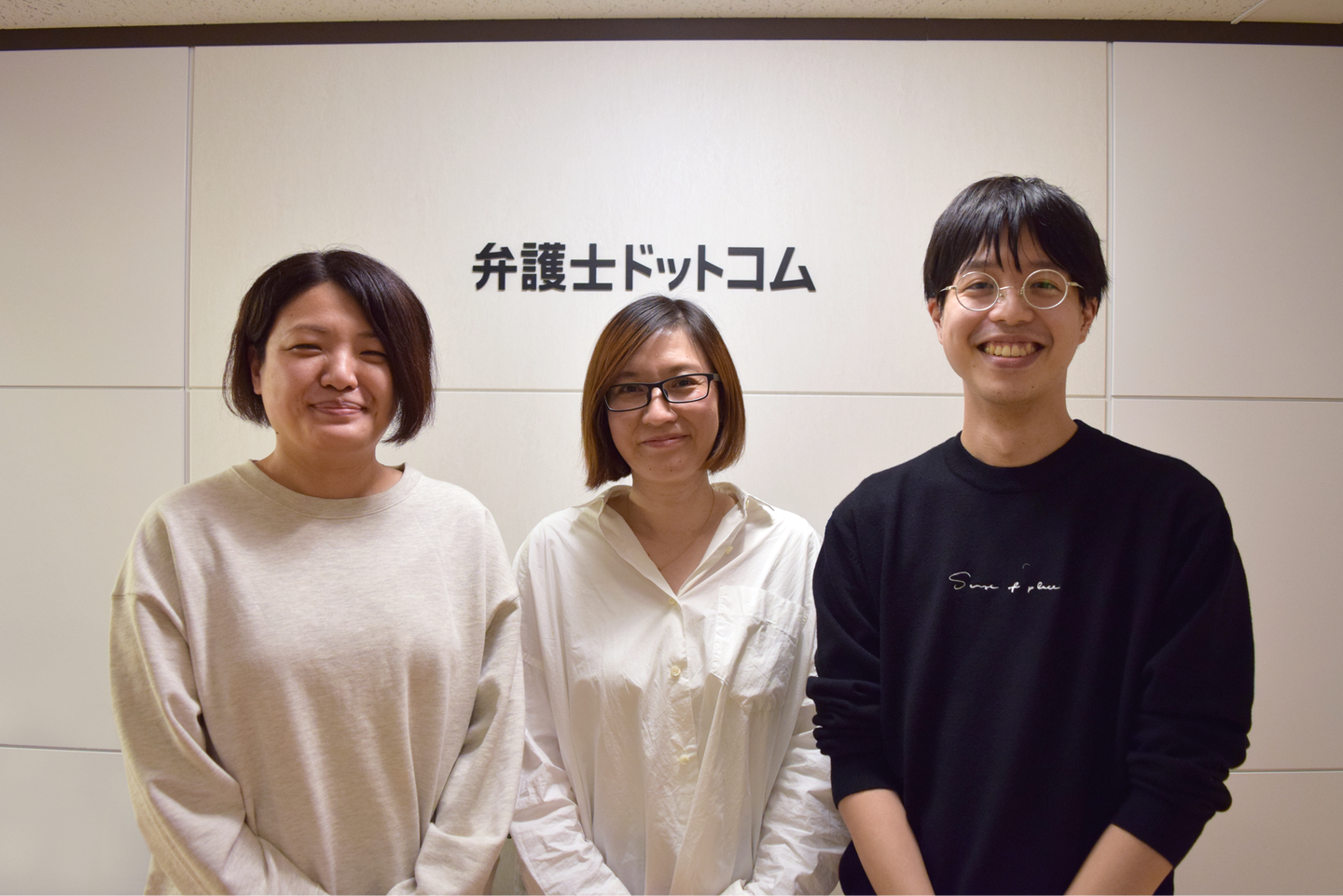 今回『弁護士ドットコム』の各サービスを担当する中途入社のデザイナー3名に、デザイナーとして『弁護士ドットコム』で働く面白さやデザイン部の組織風土について話を聞きました。