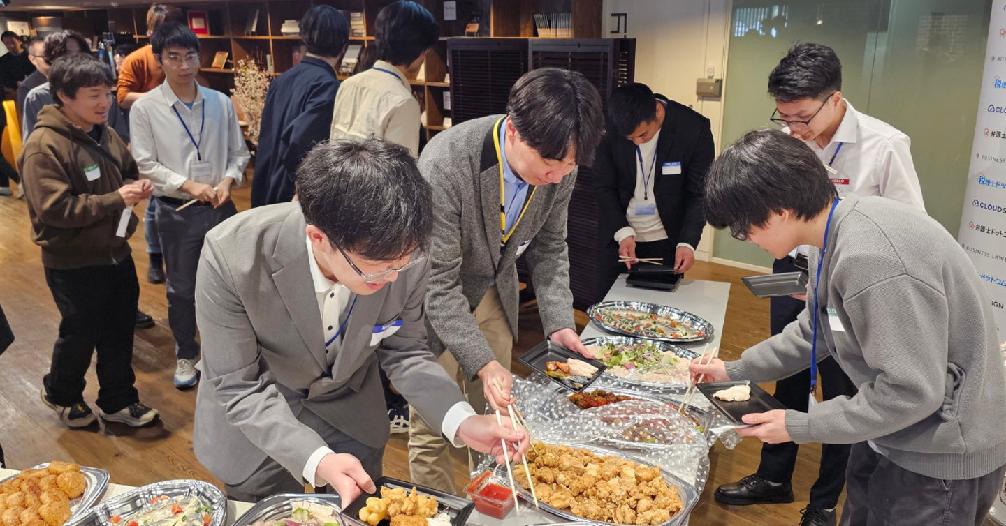 式典終了後には、ラウンジにて新入社員とエンジニアの先輩社員が参加した懇親会が開催されました。唐揚げや酢豚など、活力を与える食事が用意され、和やかな雰囲気の中で、新入社員たちは役員や先輩社員と歓談しました。仕事のこと、会社の文化、東京での生活など、さまざまな話題で会話が弾み、これから始まる社会人生活への期待がさらに高まったに違いありません。先輩社員たちの温かい言葉やアドバイスは、新入社員たちの不安を和らげ、安心して新しいスタートを切るための大きな支えとなったことでしょう。