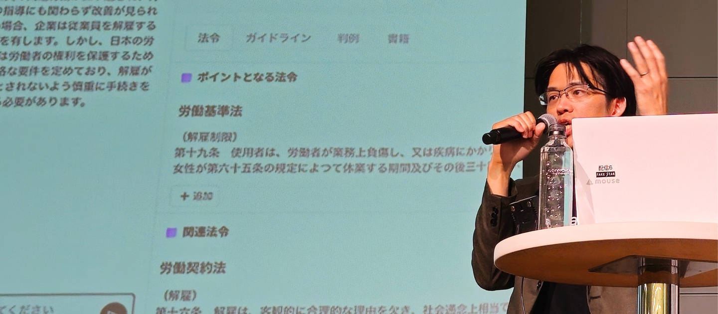講演で紹介した「チャット法律相談」や、今後リリース予定の「リーガルブレイン」は、弊社の「プロフェッショナル・テックで、次の常識をつくる。」という理念を体現するものです。AIの力を活用することで、これまで時間とコストがかかっていた法律相談やリサーチのあり方を根本から変え、企業法務部や弁護士がより多くの課題解決に取り組めるよう支援します。