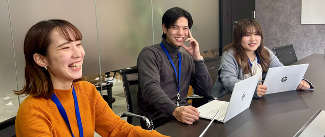 メンバー全員がフレックスタイム制・オフィス出社と在宅勤務を併用した働き方をしています。リモートワークの日が続いても社内のコミュニケーションはチャットやGoogle Meetで頻繫に行われているので、チームとの連携が取りやすい環境になっています。