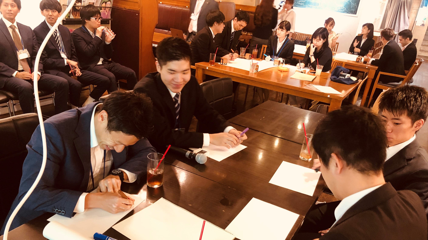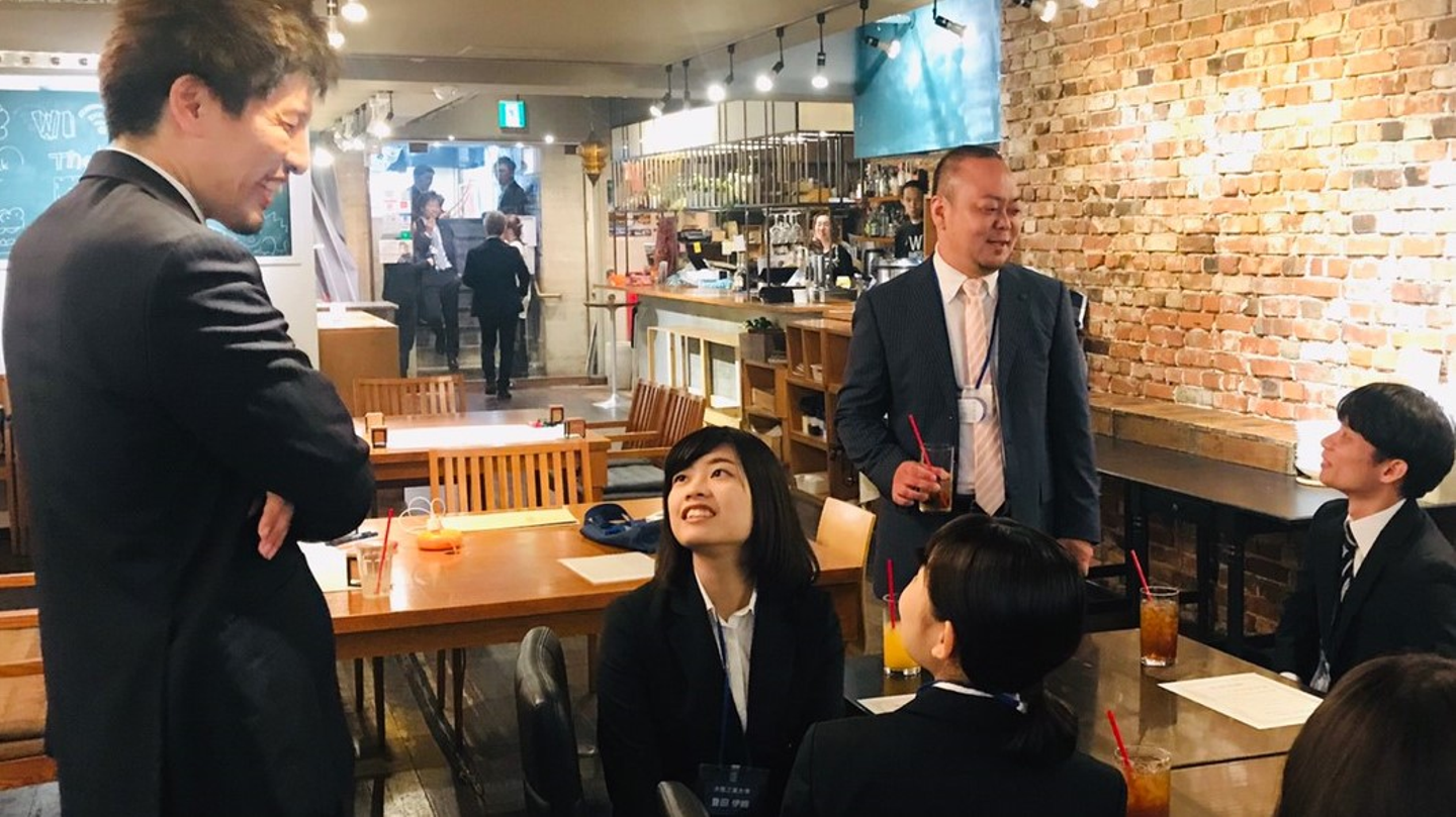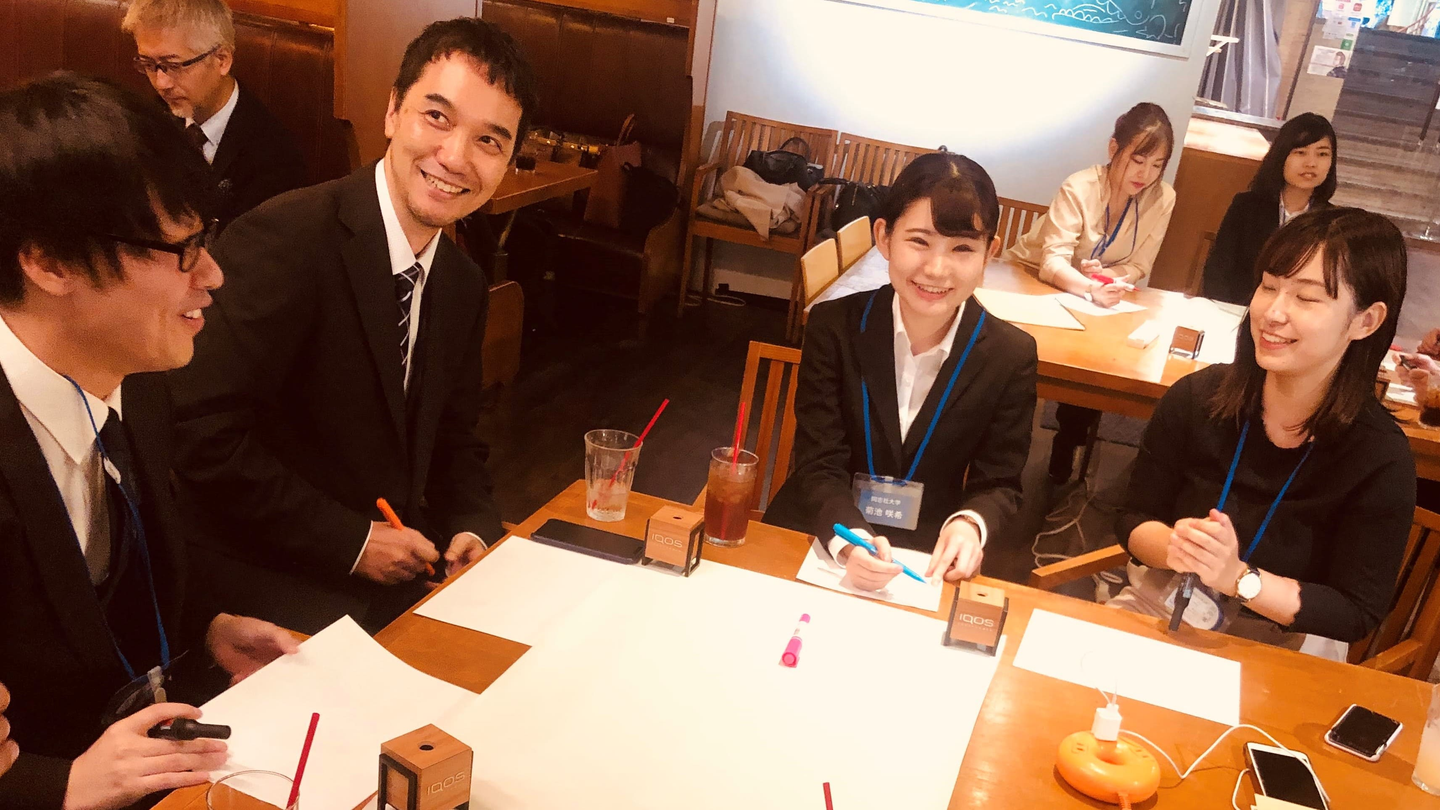 グループワークでほどよく緊張もほぐれたところで最後は懇親会です。今やっているバイトの話、部活の話、好きな仮面ライダーの話など、いつもの飲み会の雰囲気で楽しみました。