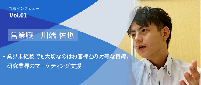社員インタビューVol.01 業界未経験でも大切なのはお客様との対等な目線。研究業界のマーケティング支援|営業職 川端 佑也