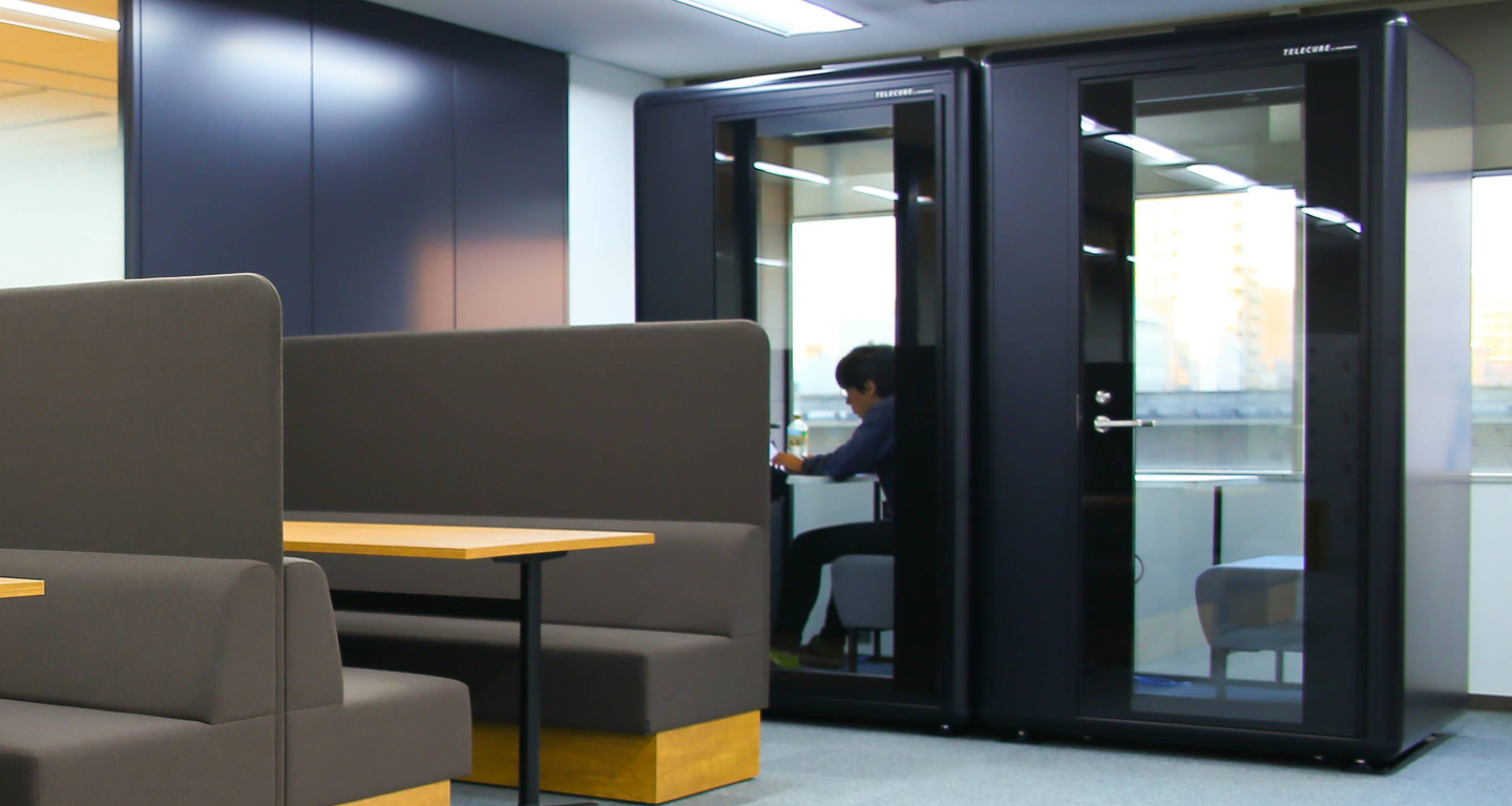 そのため、遠隔地とWEBミーティングをする際に「一人で広い会議室を使うのは気が引ける」「声が伝わりにくいので、声を張りたいが機密性の高いので出来ない」といった懸念点も出てきました。そこで、新たにテレカンブースを設置しました。