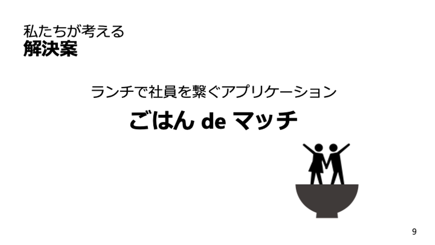 プロダクト概要:同じお店に行った人が分かり、ごはん de マッチ上に登録された情報から共通点が見つかることで今まで話したことない人とのコミュニケーションのきっかけを作りだすサービスです。
