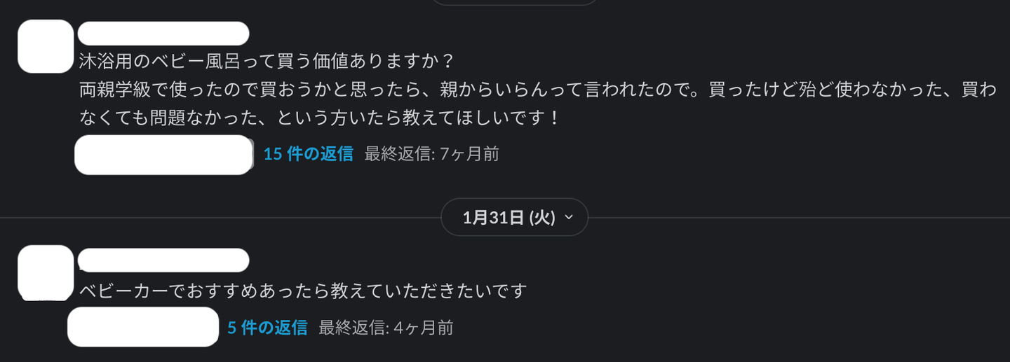 その他にも、社内コミュニケーションツールでは子育てチャンネルがあり、さまざまな情報交換を気軽に行うことができます。