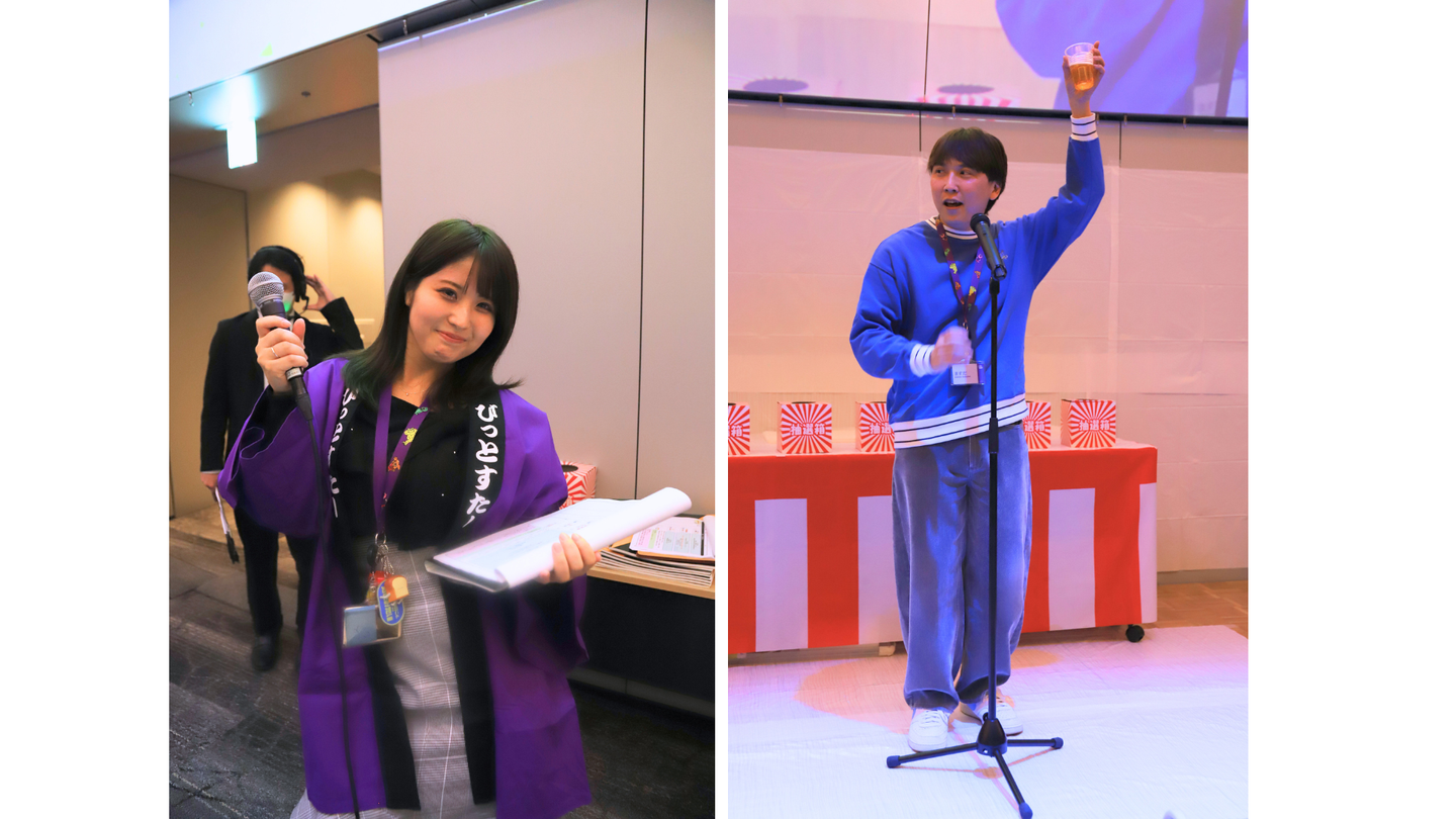懇親会の司会は、今回ベストルーキー賞を受賞した古屋さんと、引き続き今関さんが担当。そして乾杯は、新執行役員の増田さんが務めました🍻✨