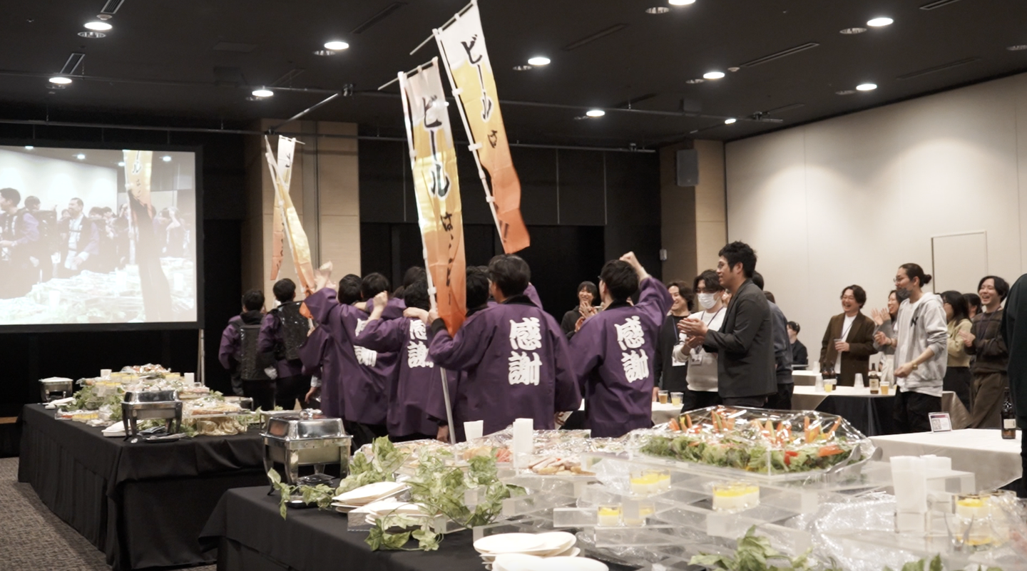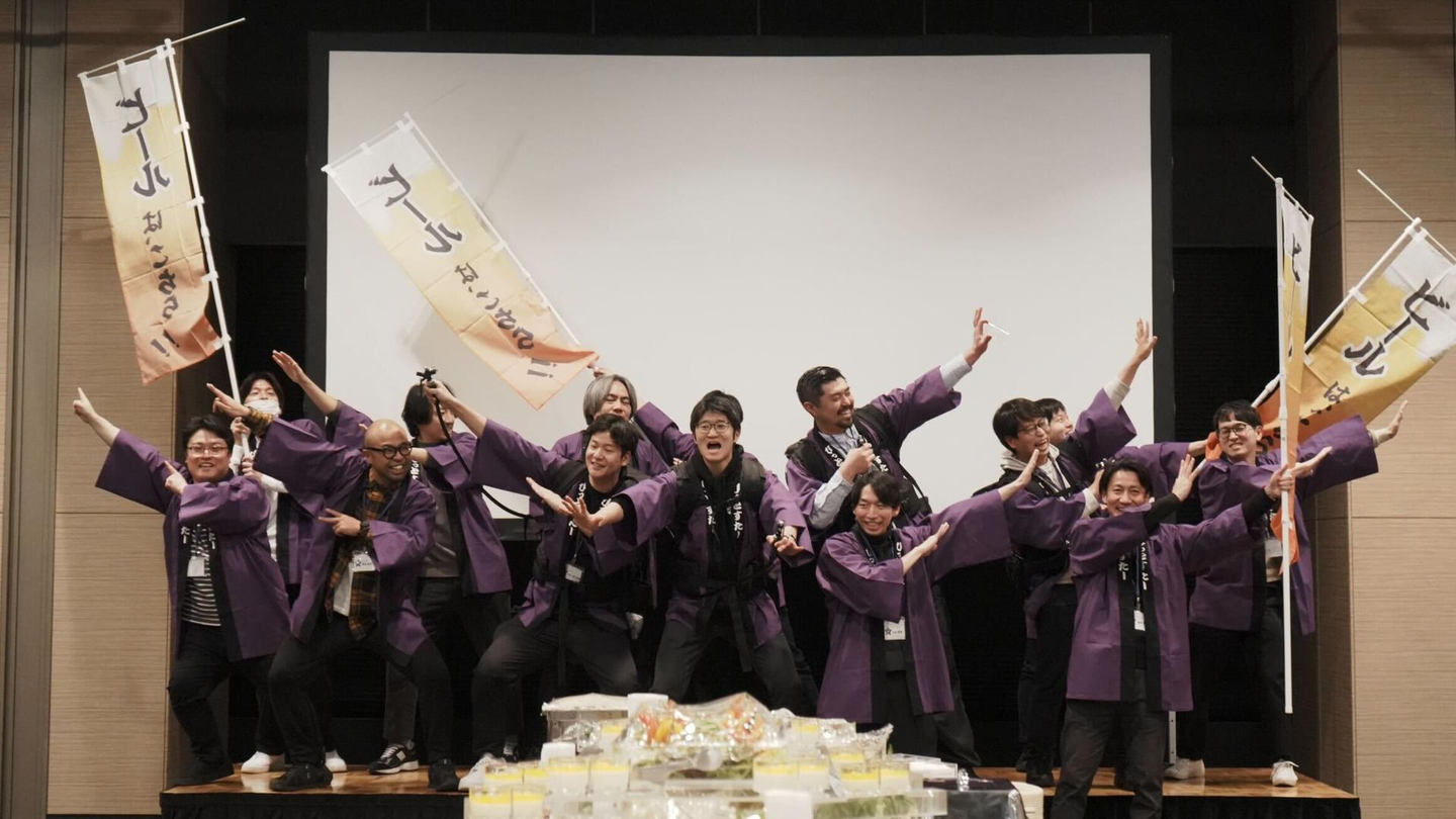 ちなみに冒頭、経営陣と部長陣が「ハッピ隊」として登場し、ビールサーバーやドリンク片手に社員のみんなを労うシーンが1番盛り上がっていました🍻
