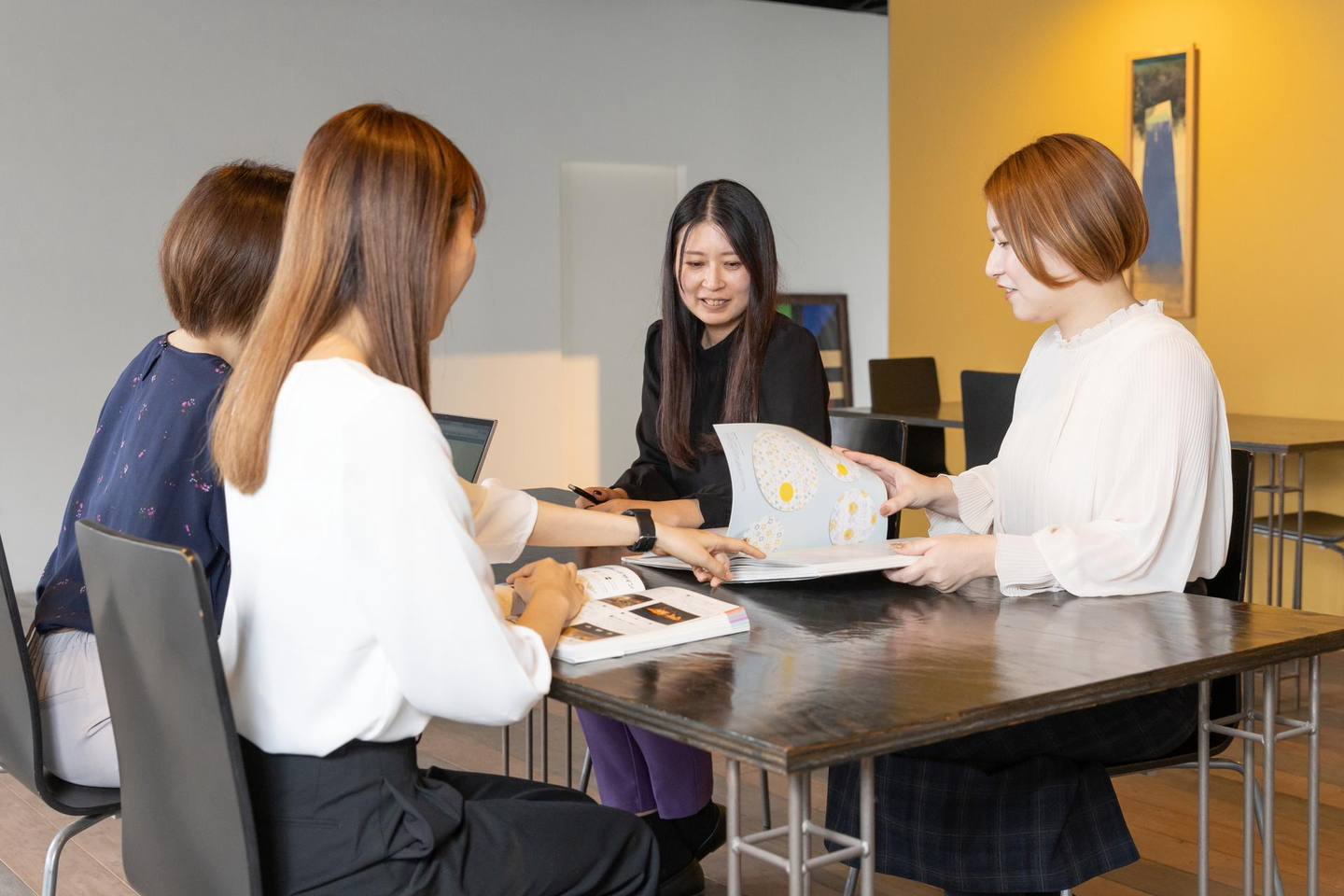 自分がデザインした制作物に対してお客さまの反応が良かったときにやりがいを感じられることです。お客さまから「満足いくものが出来上がった」等のお言葉をいただくことは嬉しいですし達成感も感じます。デザイナーがお客さまと直接やり取りすることはないのですが、セールスやディレクターの方がお客さまの感想や声を共有してもらえることは嬉しいですしモチベーションにつながりますね。