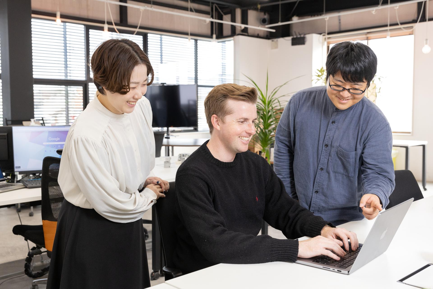そうですね、どういう人だろう・・・何か前向きな人というのが一番に浮かびます。ざっくりした言い方になってしまいますが、私たちの仕事はクライアントさんのいろいろなお悩みを解決することなので、なんでも前向きに物事を捉えて「こうやったらもっと良くなる」という発想ができる人がいいと思います。あとはズバズバ物言いができる人ですね。クライアントさんに抱えている問題とか悩みがある以上は、解決するべきものがあるということなので、そこをちゃんと見つけて、しっかりと伝えて提案して解決に繋げることが必要だと思います。クライアントさんはお客様ではありますが同志というか、一緒にやっていくパートナーだと考えています。だから意見をお互いに言い合える関係性を大事にして、的確に指摘できる人じゃないと、うまくやっていけないかなと。未経験でもチームや会社全体でしっかりとサポートいただけるからこそ、クライアントさんとこうした関係構築ができるのだと思います。