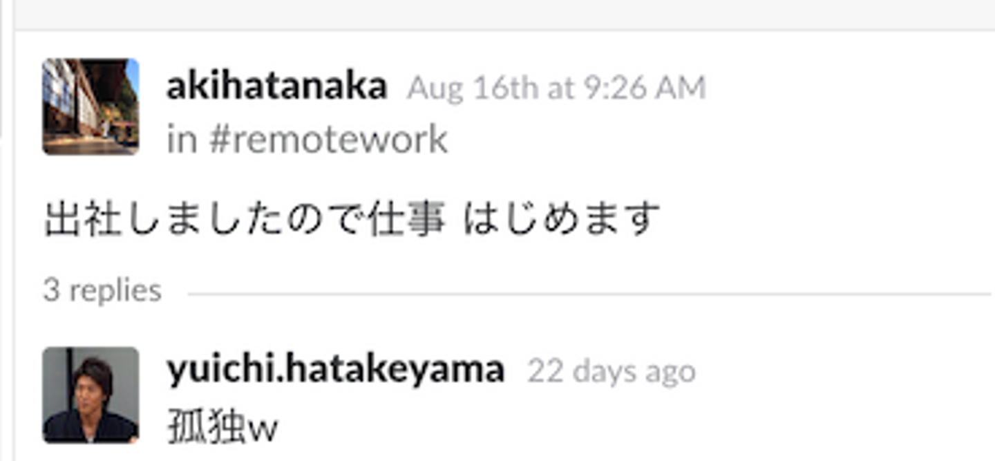 逆に先日、お盆休みにイレギュラーで一人仕事をしていたときはチャットができず本当に寂しかった…不憫に思ったのか代表の畠山が反応してくれました。笑
