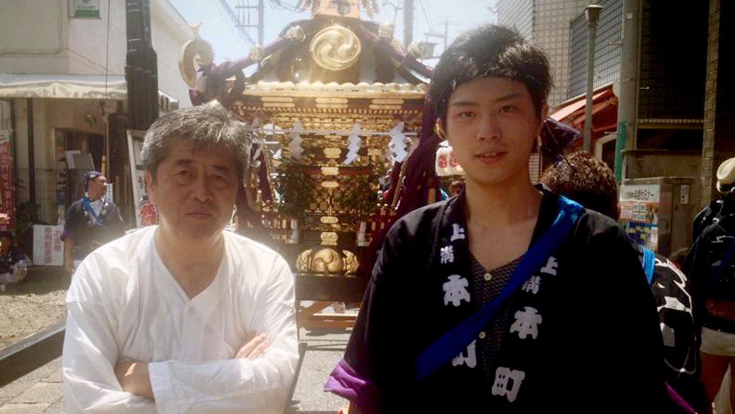 高校生の頃、父親と地元の夏祭りで神輿を担いだ時の一枚。
