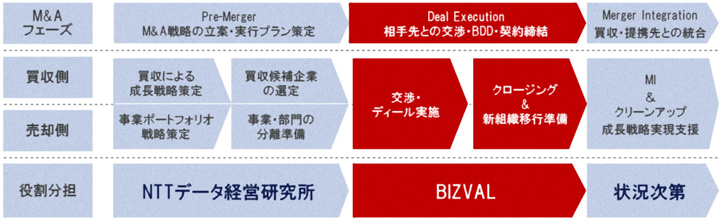 これによりNTTデータ経営研究所は、特にテック分野の事業強化や新規参入に向けた買収ニーズを抱えるお客様に対し、ビジネス構想・成長戦略の立案から、ビジネスデューデリジェンス・契約締結、買収・提携先との統合までを一気通貫でサポートすることが可能となります。