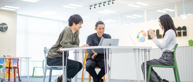 社員のキャリを起点とした社内ジョブチェンジ制度があり、社内で 様々な職種や職位にチャレンジすることが可能です。インターンし入社からデザイナーへキャリアアップやエンジニアからセールスにジョブチェンジ、未経験で新規事業開発に抜擢されたメンバーなど、たくさんの事例があります。
