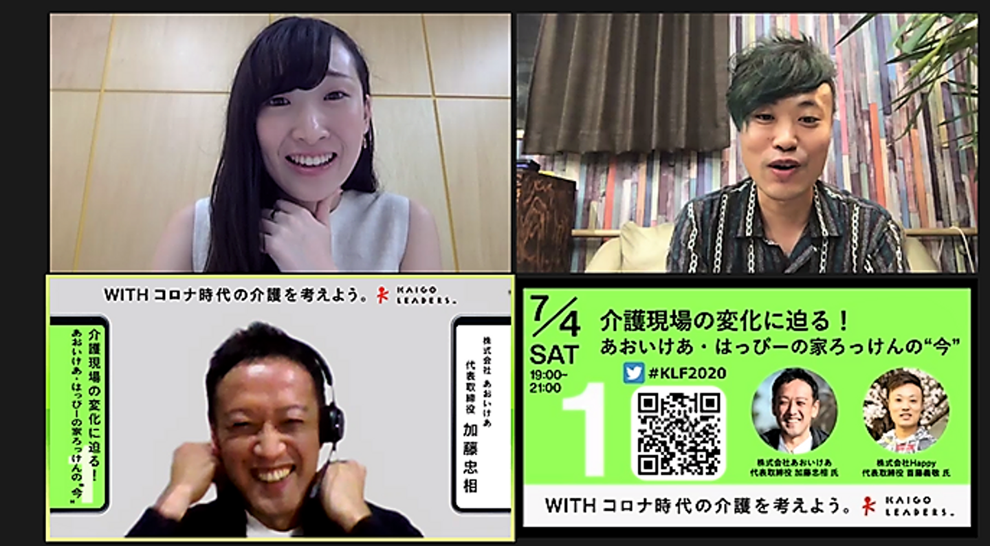 これまで東京・大阪などでのリアル開催を中心に行っていたKAIGO LEADERSのプログラムをすべてオンライン化。様々な形で学びの機会や、つながりの場を提供しています。