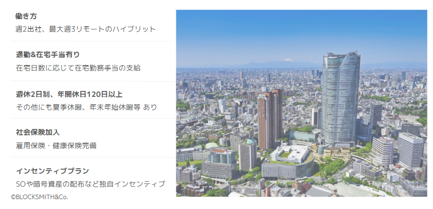 こちらの記事では弊社BLOCKSMITH&Co.(以下、BLOCKSMITH)の社内制度や働き方、オフィスや周辺の環境についてレポートいたします!この記事を読めば、BLOCKSMITHの働く環境や制度、社内の雰囲気などを知ることができます。