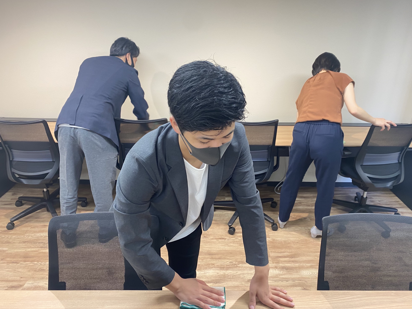 9:50から10分間、出社しているメンバー全員で環境整備を実施します。職場環境を自ら整え、業務に集中する環境を自ら作るためです。月に1度CEOチェックがあり、3ヶ月続けて合格をもらうとチームみんなで「達成ランチ」に行くことができます。