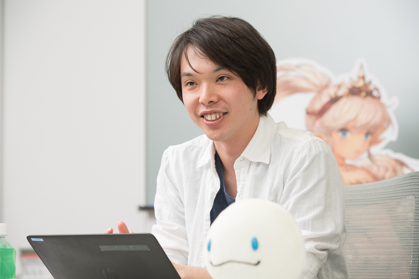 社内チャットでは、リリース済みゲームのイベントストーリーのアイデアなどを社員がいつでも提案でき、社内全体でモノ作りを行っています。これまでいくつものタイトルを発表してきたからこそ、データ分析がとても大切なポイント。