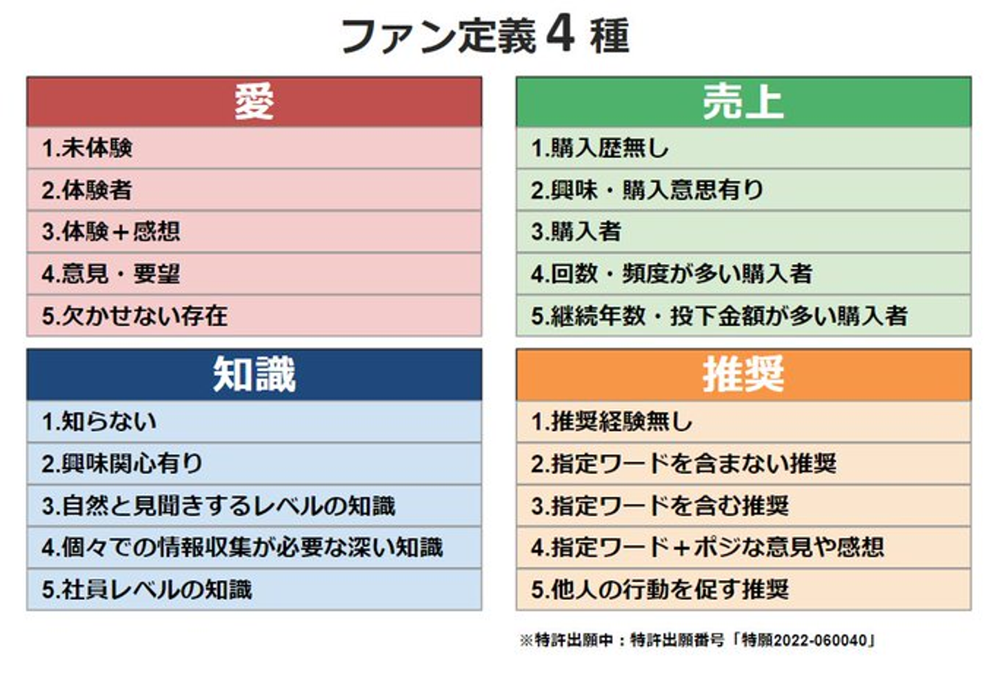 BOKURAで『ファン定義4種』と呼んでいるものです。