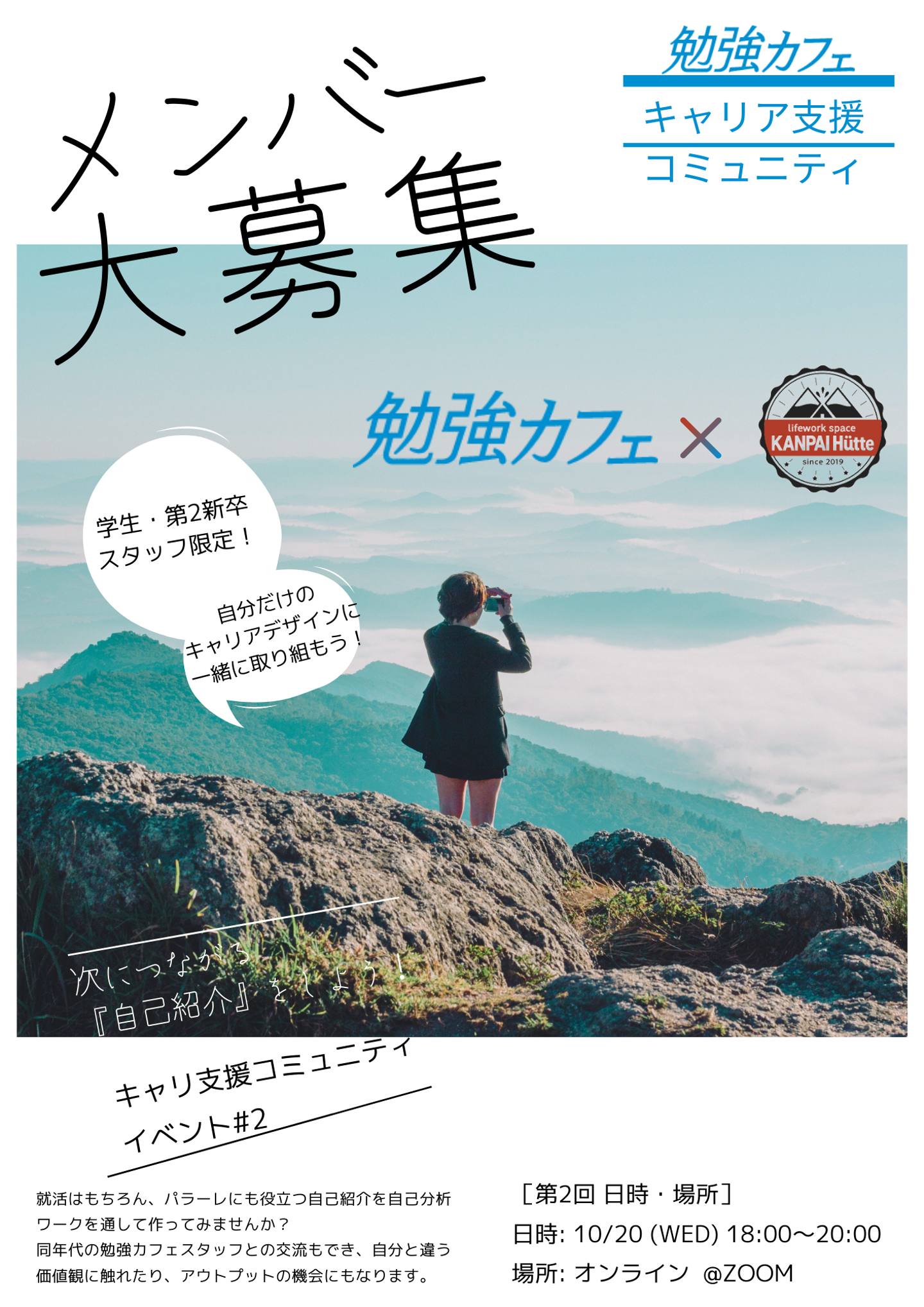 そんな思いから担当の岡田さんにスタッフ向けの就活サポートができないかをご相談したところ、快く引き受けていただき、1回目の勉強カフェスタッフ向けキャリアサポートイベント「『働く』ってなに?~“勉強カフェ”での経験を社会で活かすには?~」を9月に開催することができました。