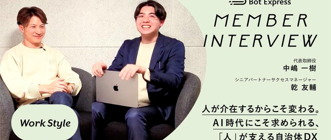 株式会社Bot Expressは、「世界からめんどくさいをなくせ。」をミッションに、 日本の行政サービスを、オンラインでほとんどの人が今すぐに利用でき、説明書が不要な仕組みにアップデートしています。 スマホの中に役所窓口を開設できる、官公庁専用アプリケーション「GovTech Express」を開発提供し、全国で330以上の自治体へ導入しています。 2025年には過半数の自治体がGovTech Expressを導入するというのが一つのマイルストーンです。