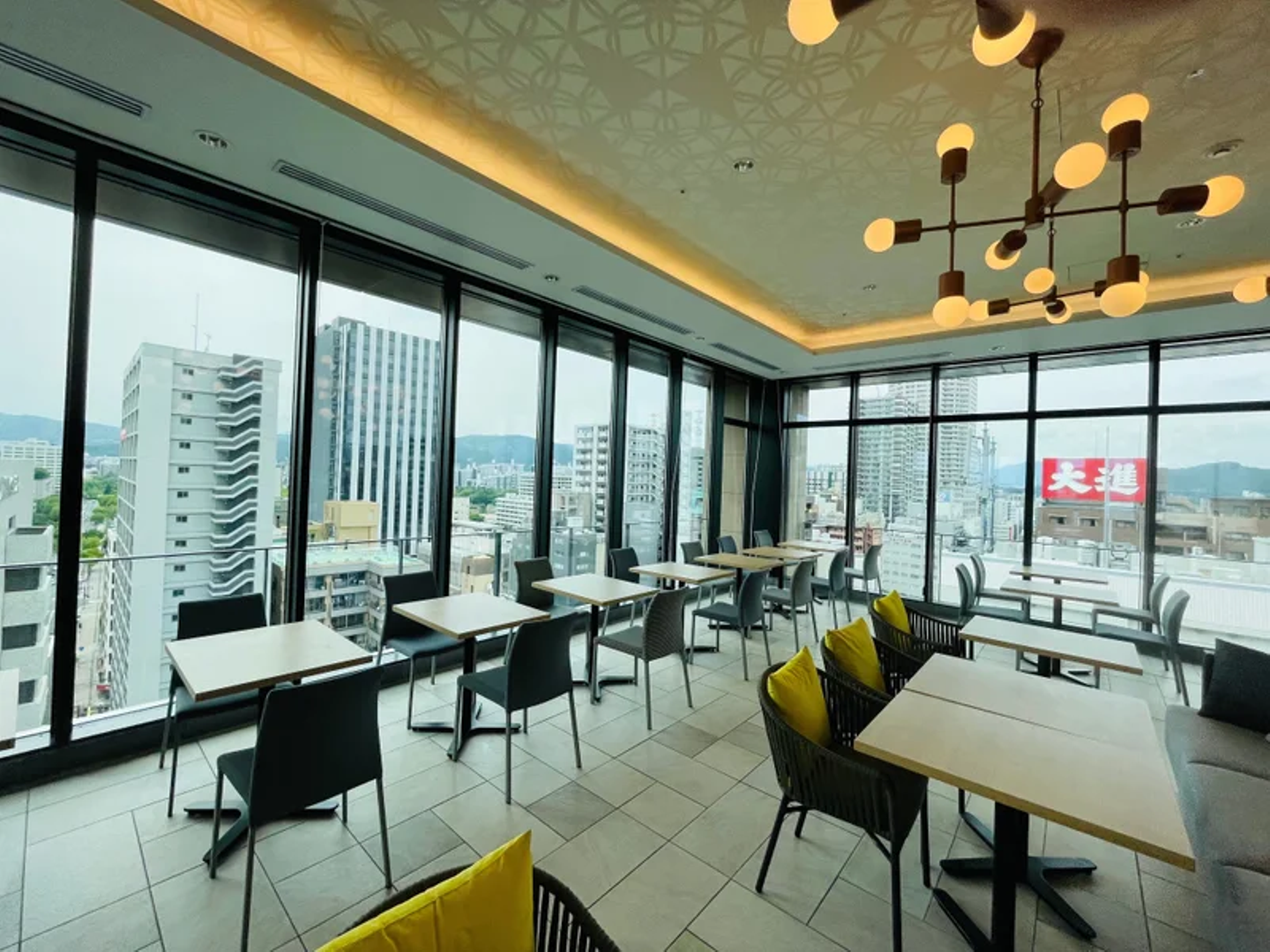 今回滞在したのは広島の中心部、八丁堀にあるホテルインターゲート広島です。このホテルの特徴はなんといってもラウンジです。朝6時から夜10時までラウンジが開放されていて、時間帯に合わせてドリンクや軽食などが常に提供されています。仕事の合間に小腹が減ったときに軽食をつまんだり、集中したいときにコーヒーを飲んだりすることができるので、まさにワーケーションに適したホテルと言えます。またホテルが中心部にあるので、休憩時間や退勤後に広島城などの市内の観光スポットにすぐ行けるのも大きな魅力でした。