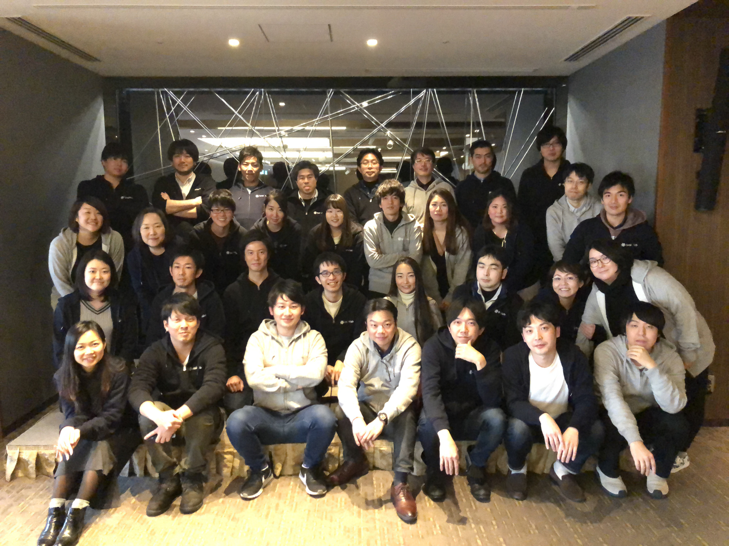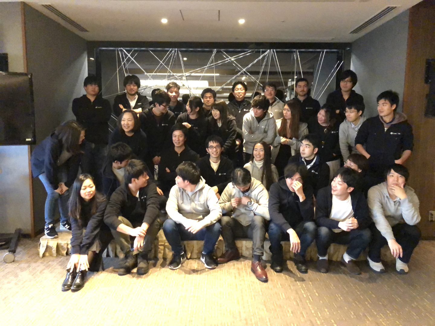 ここまで真面目に取り組みすぎたのか集合写真を撮ろうとしたところ、普通の写真では面白くないという代表の一言で、今年の新卒(づめちゃん)に社長っぽい雰囲気(腕を組んで堂々と座る)を出してもらい、集合写真を取ってみることにしました。