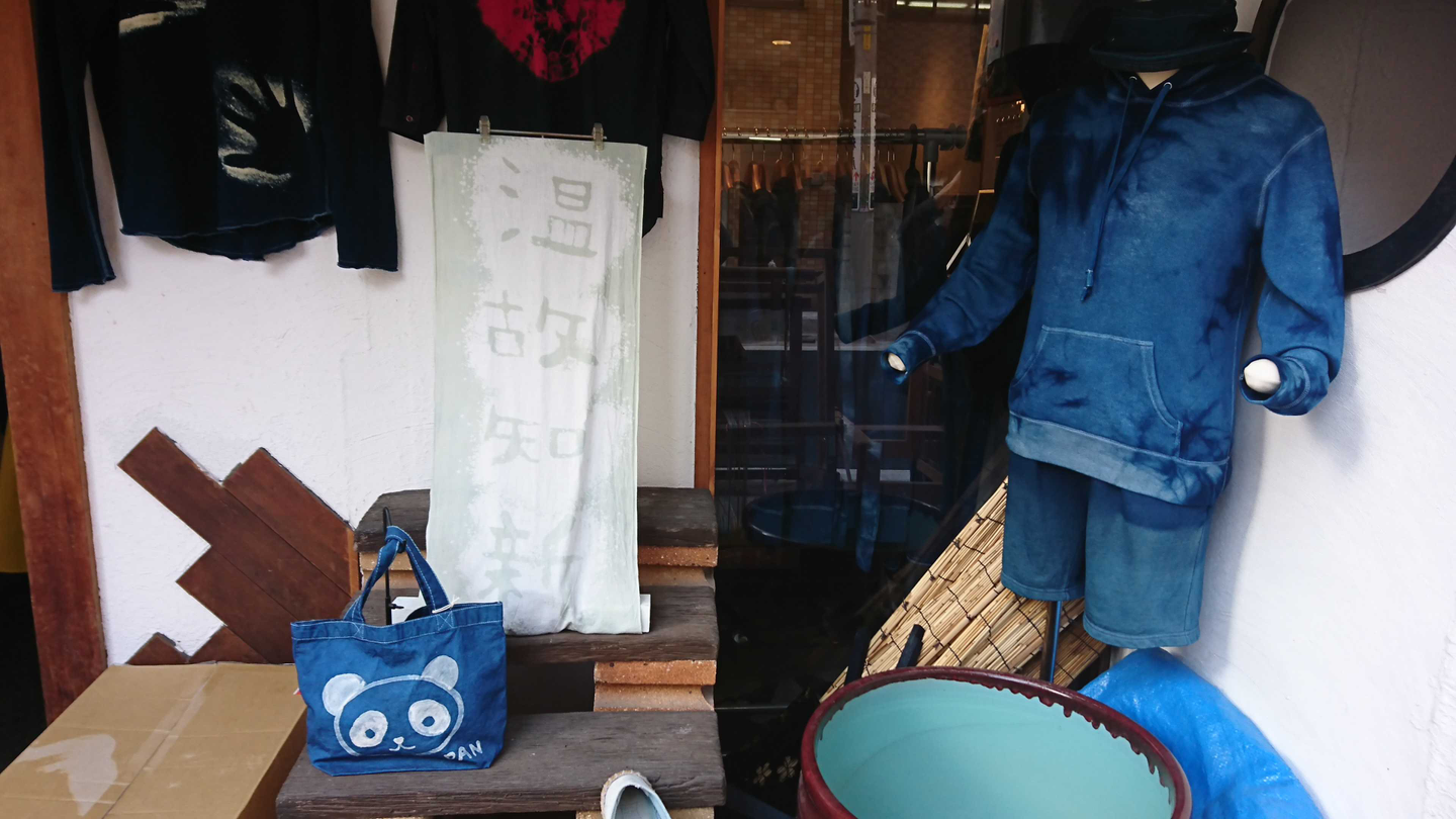 ここではハンカチ、手ぬぐい、ストール、バッグ、シャツ、靴なども様々なものを染めることができるそうで、やり方次第でどのようなデザインが出来上がるのかが分からないところが藍染めの醍醐味とのこと