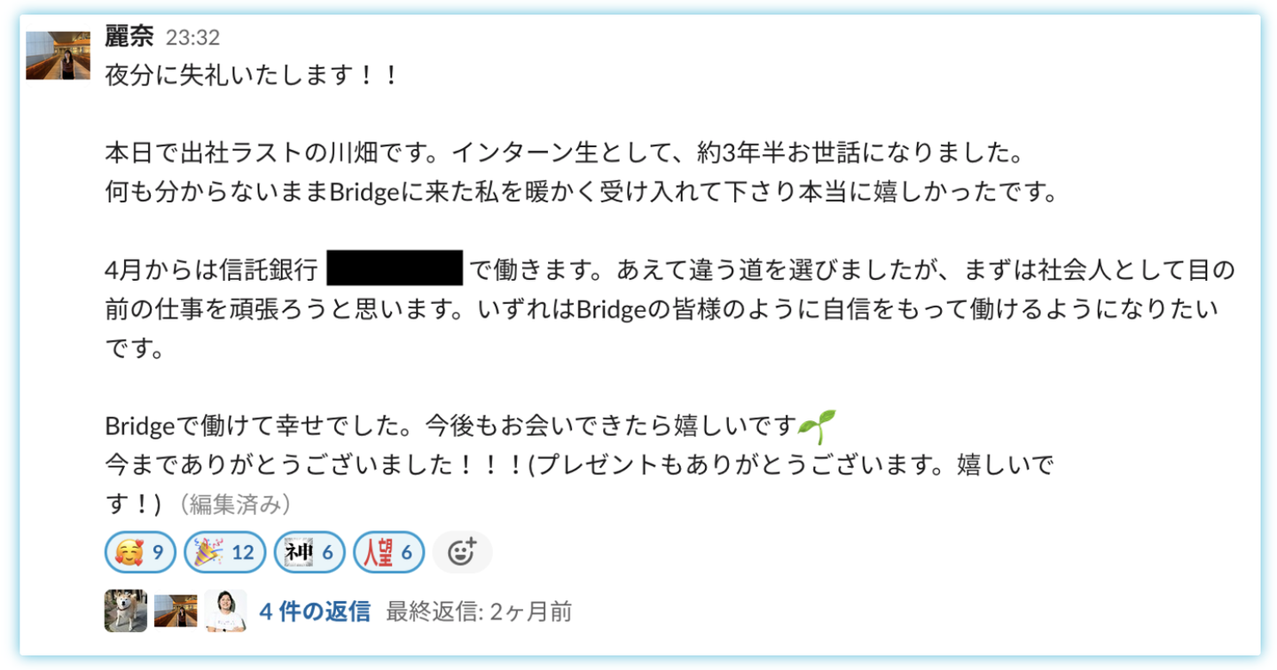 -最後に、卒業したBridgeへメッセージをお願いします!