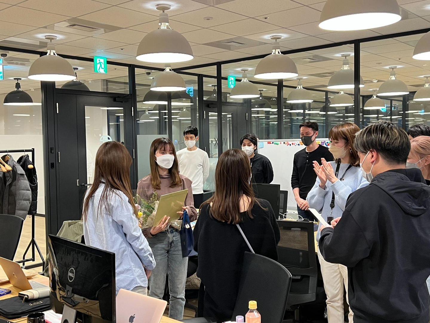 ※2022年3月末、最終出社日にオフィスで送別会を行った時の写真。