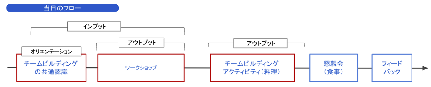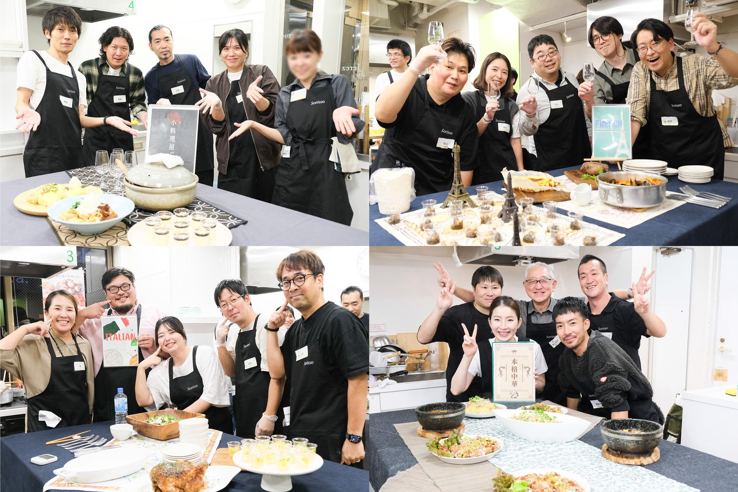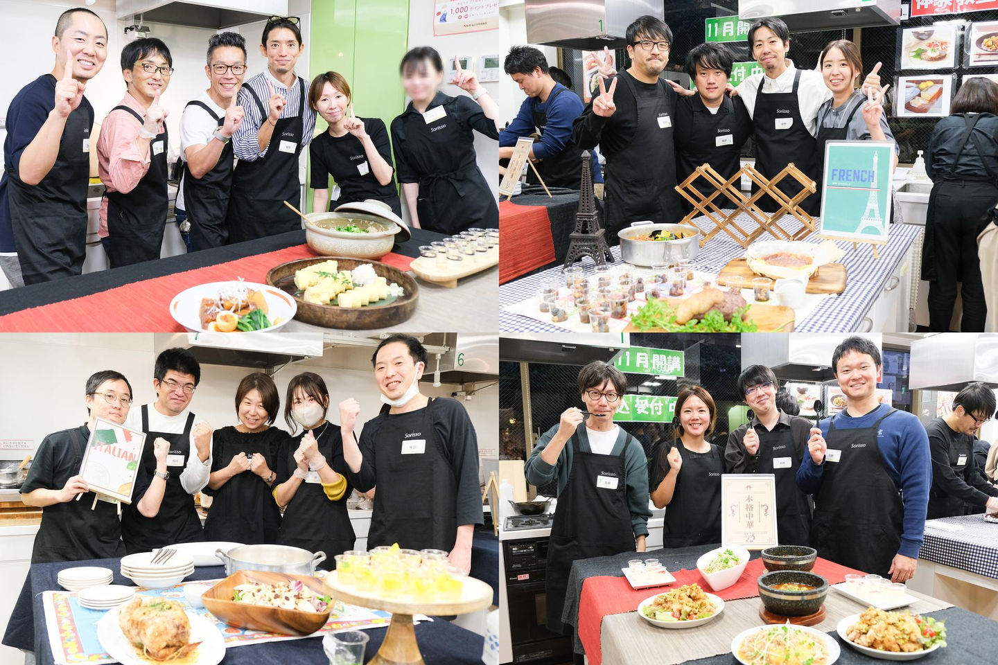 実際のチームビルディングアクティビティでは、和食、中華、イタリアン、フレンチを各チーム選択し、各料理をチーム内で分担して時間内に調理できるかを競いました。