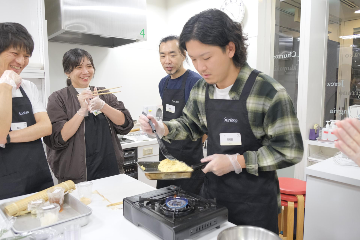 採用リーダーの野田も出汁巻き卵に奮闘しました!(実は料理好き)